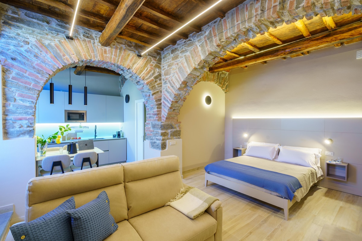 Þetta stúdíó er með A/C, aðgang að þráðlausu neti, eldhússvæði með ísskáp og eldunaraðstöðu, queen-size rúmi, sjónvarpi, innbyggðu öryggishólfi, sérbaðherbergi með sturtu og best af öllu svalir með sjávarútsýni og garðverönd með mögnuðu útsýni! Stúdíóið er staðsett í kyrrlátri stöðu við hliðina á kastalanum sem gnæfir yfir þorpinu og er í tíu mínútna göngufjarlægð frá sögulega miðbænum og lestarstöðinni.