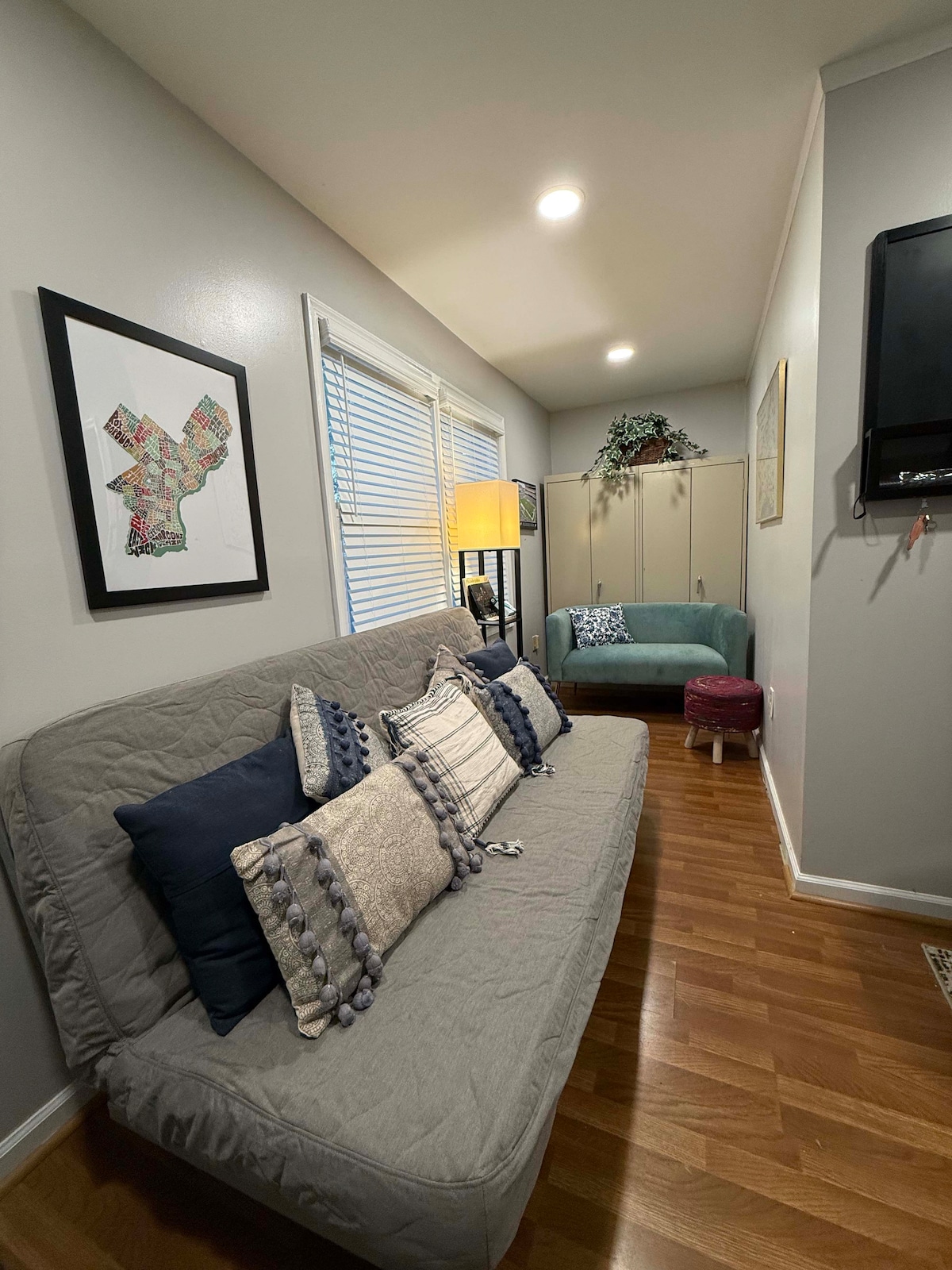 Verið velkomin í Hope House! Við erum sett upp sem íbúð með 1 eða 2 svefnherbergjum en það fer eftir bókunarupplýsingum. Einingin okkar býður upp á mikla birtu og er á jarðhæð svo að þú þarft ekki að vera með farangur upp og niður stiga. Sérsniðin gluggatjöld opnast efst niður eða neðst til að viðhalda næði eins og þér hentar. Það er öruggt, afgirt aðgengi að byggingunni, auðvelt að nota snjalllás, hratt þráðlaust net og 60" háskerpusjónvarp með FireStick til að fá aðgang að öllum uppáhaldsáskriftunum þínum. Ekki er hægt að slá slöku við nálægð við Fishtown, NoLibs og samgöngur!