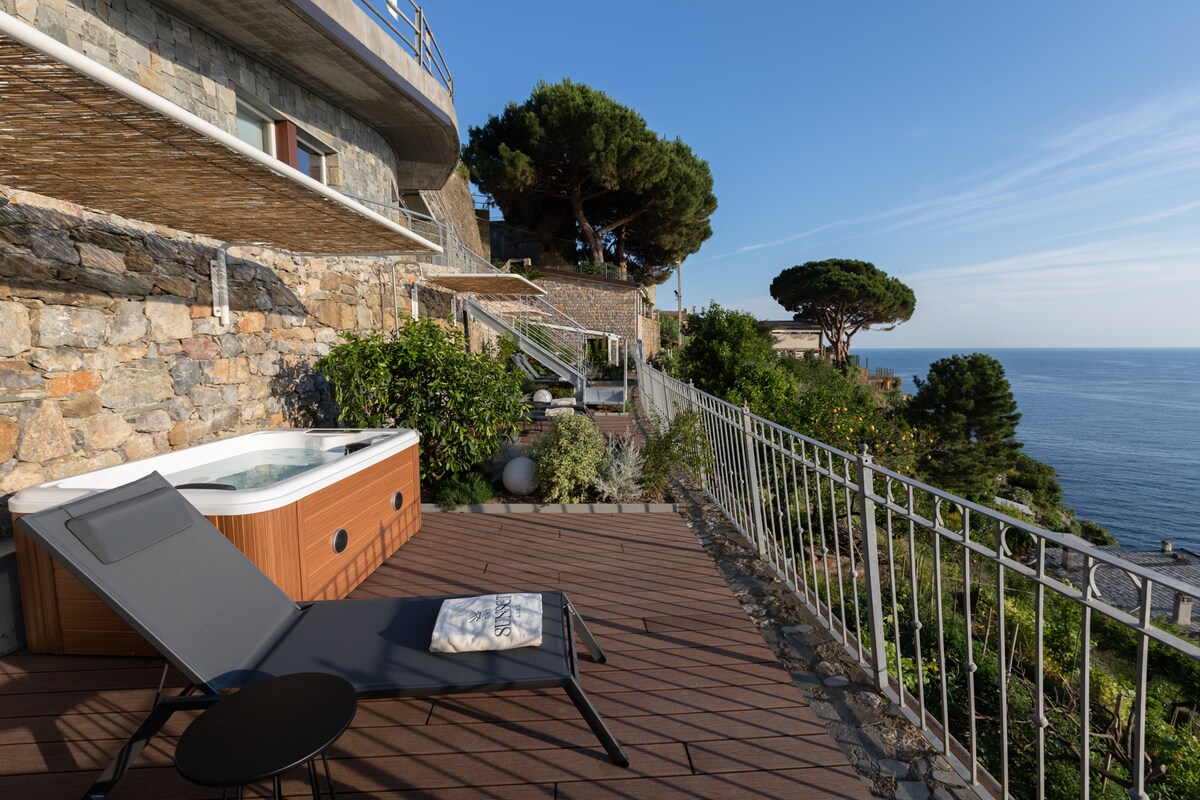 Gistu á þessu fallega lúxusheimili með áherslu á smáatriðin. Í Riomaggiore, í hjarta Cinque Terre, er magnað útsýni fyrir lúxusdvölina. Eyddu einstökum og ógleymanlegum stundum og njóttu sólsetursins úr herberginu þínu. Einkastólar og ljósabekkir. Yndisleg staðsetning með öllum þægindum sem gera þig að einstakri upplifun. Taktu á móti fordrykk með fyrsta deginum