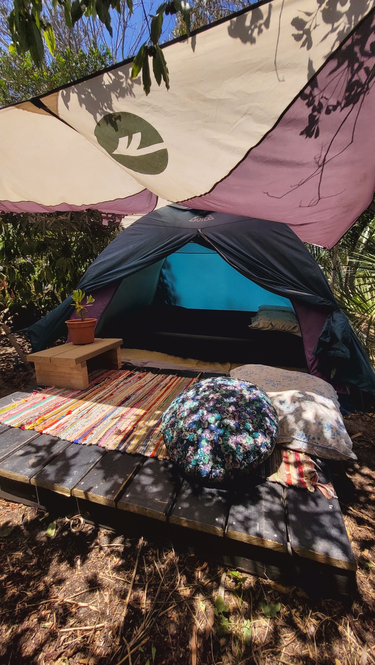 Þetta litla land er svo sérstakt. Slakaðu á í Diablo-lífinu með tjaldstæði í jaðri þorpsins. Það er aðeins um 10 mínútna hjólaferð á ströndina. Það er pláss til að slá upp tjaldinu, njóta hengirúmanna í skugganum og nota fallegt baðherbergi í sameign. Í sturtunni er heitt vatn. Í búðunum er gaseldavél og eldunarbúnaður fyrir tvo. Þar er einnig útivaskur fyrir diska. Það gætu verið margir í útilegu og við vonum að þú eignist nýja vini.