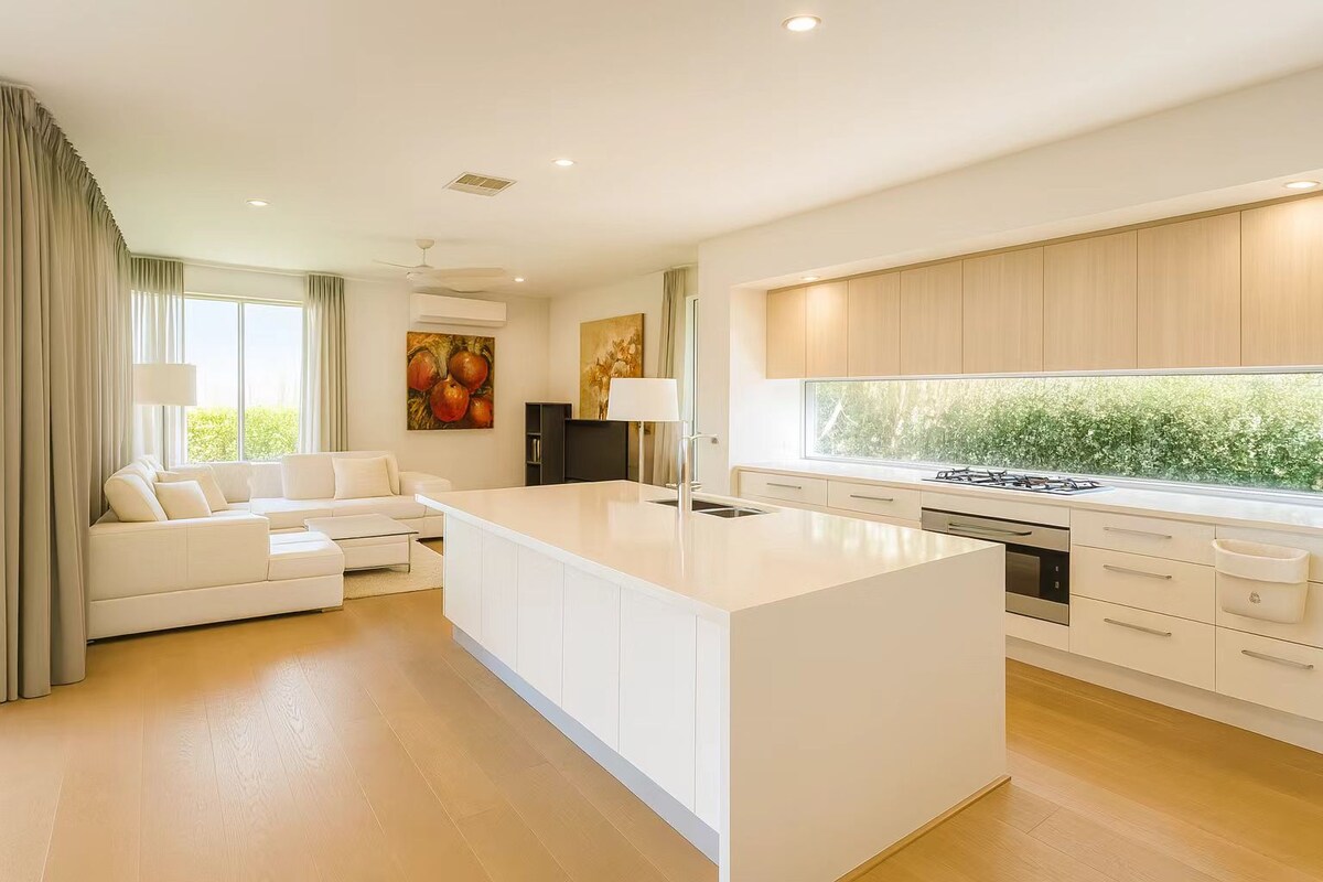 ✅ Ástæða þess að þú munt elska það 🛌 4 svefnherbergi – rúmar allt að 8 gesti þægilega við friðsæla götu 🏡 Tilvalið fyrir fjölskyldur og hópa – aðskilin vistarverur/svefnsvæði á 2 hæðum 🌿 Einkabakgarður og yfirbyggð verönd – tilvalin fyrir afslöppun eða alfresco máltíðir 🚗 Gjaldfrjáls bílastæði – tvöföld bílageymsla + valkostir við götuna 📍 Auðvelt aðgengi að alls staðar – verslunum, veitingastöðum, ströndum og viðskiptum ❄️ Miðlæg loftræsting í öllu - vifta í svefnherbergjum