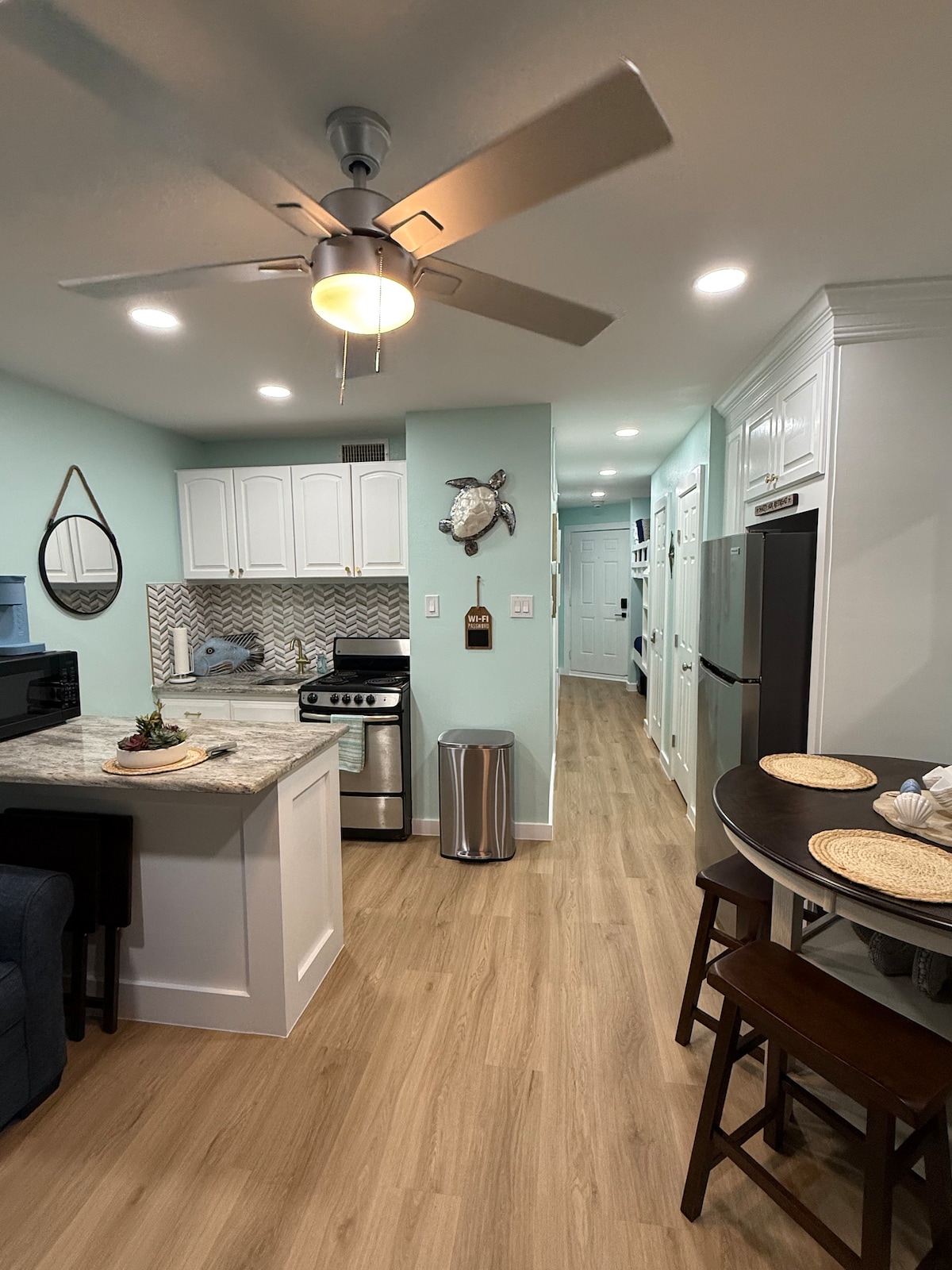 Our Kitchen Suites are located in our 1, 2, 3, and 4 buildings. They are located in some of our original buildings here at Seashell Village Resort, and have been updated over time to appeal to modern sensibilities. The Kitchen Suites are the perfect room type for small families or couples. Not pet friendly. Kitchen Suite Features: Located on the ground and second floors One bedroom suite with one queen size bed in the bedroom and a sleeper sofa in the living room