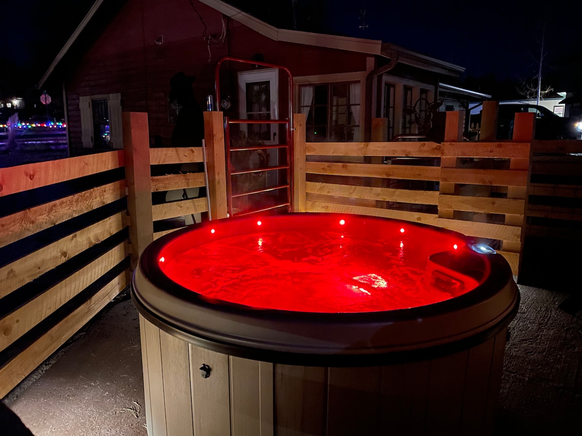 Go back in time in a 1930's Farmhouse cabin near Pikes Peak. Great location, 2 blocks from downtown and new hot tub! Walk to coffee shops, restaurants & parks. Enjoy the outdoor fresh air, hiking & fishing. Short drive to Pikes Peak & many other must see sites! Fully stocked kitchen with fun retro appliances. Dog friendly with a fenced in backyard. Enjoy an evening around the outdoor fire pit or indulge in relaxation & enjoy the remote fireplace in the bedroom. WIFI, Smart TV's and plush bed.