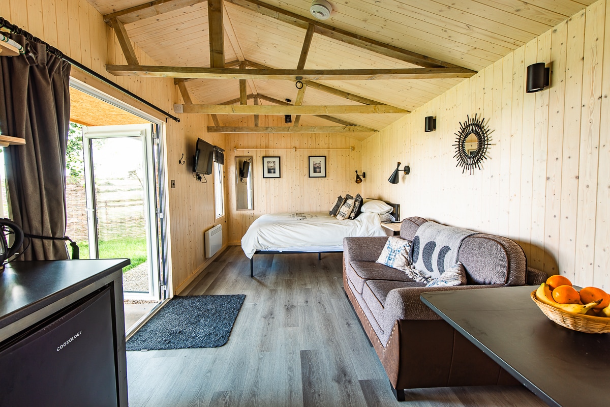 The Field Shelter is located on a working farm in the heart of the Cotswolds. Nestled amongst trees behind the yard you can sit and enjoy the a stunning view of the rolling fields, and if you are lucky you might catch a glimpse of the deer. In the summer you can enjoy watching horses and tractors in the fields below. There is an enclosed garden with a fire pit (subject to weather), table and chairs. There is a fridge, toaster and kettle, and tea, coffee and snacks left in the kitchen.
