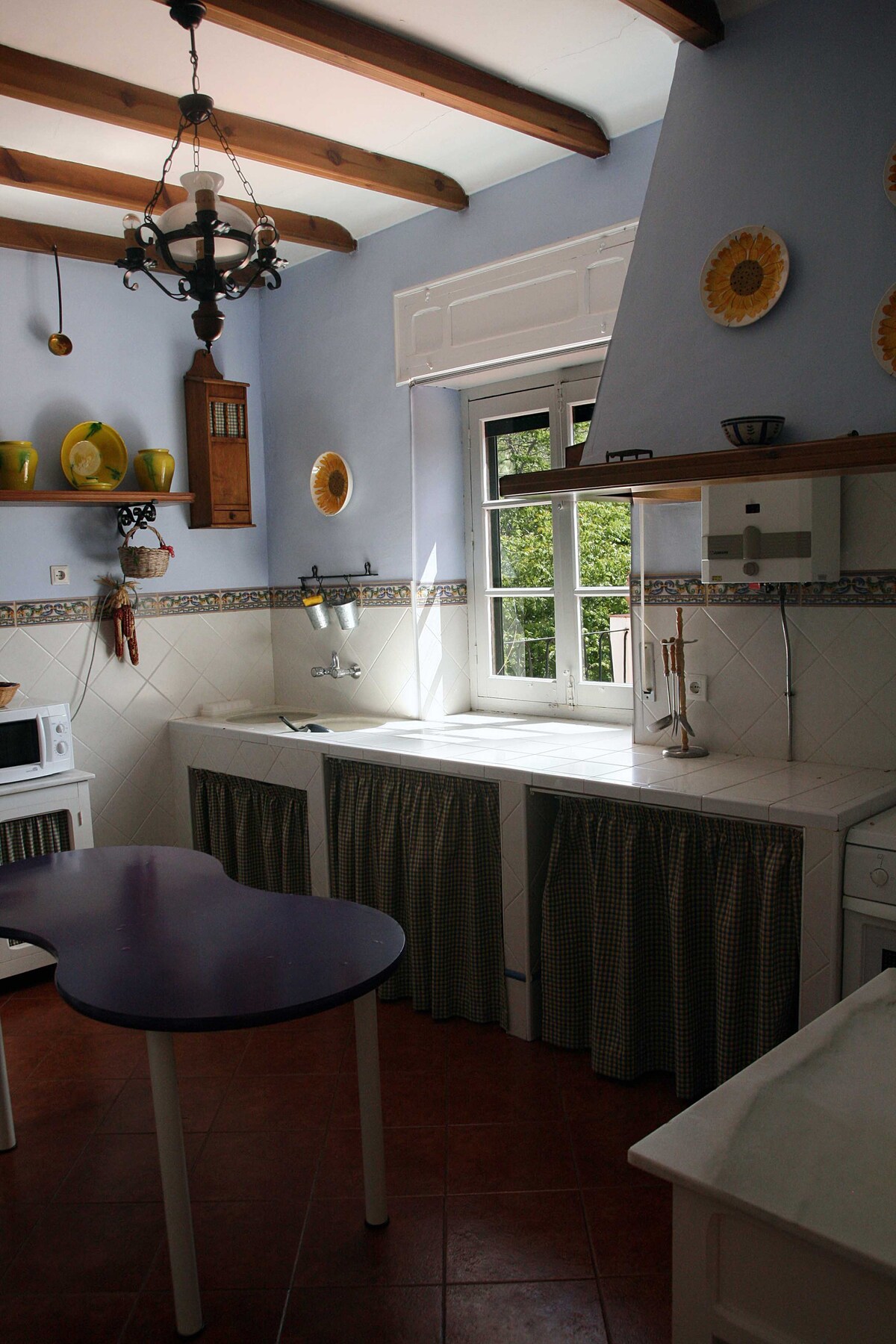 Mjög náttúrulegt og fullkomlega upplýst hús, staðsett í 5 mínútna göngufjarlægð frá bæjartorginu. Það er innréttað á sveitalegan og stílhreinan hátt þar sem viðurinn er aðalpersónan. Bílastæði eru einnig í boði í nágrenninu. Nýlega uppsett loftræsting í aðalsvefnherbergi ásamt tveimur loftviftum.