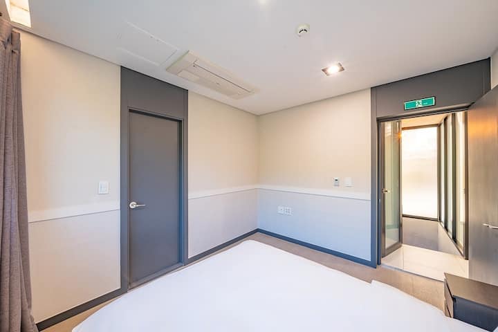 Tvíbýli: stofa + eldhús + svefnherbergi A (king 1) + svefnherbergi B (queen 1) + svefnherbergi C (queen 1) + ondol herbergi A (1 fúton) + baðherbergi 5