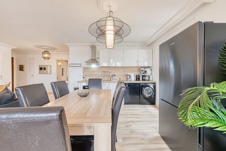 Dásamleg 4 svefnherbergja íbúð, þráðlaust net úr trefjum