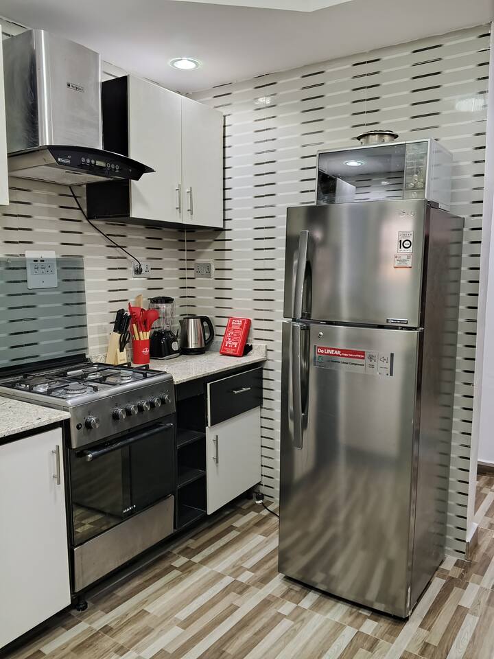 Rafmagn: Í íbúðinni er rafmagn allan sólarhringinn með rafal og 40KVA vararaðgerð með sólarknúinnum áriðli sem tryggir ótruflað afl fyrir lýsingu, þráðlaust net og nauðsynleg tæki. Öll svefnherbergi og stofur eru með loftkælingu; hins vegar eru loftkælingareiningar í stofu knúnar almennum rafmagni.