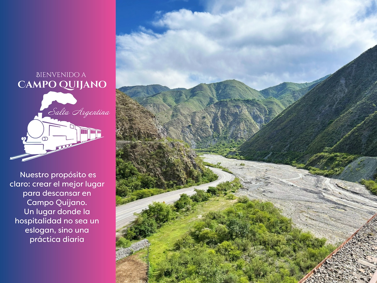 Áhugaverðir staðir: ótrúlegt útsýni og afþreying fyrir fjölskylduna. Þú munt elska eignina mína með því að vera staðsett á milli gróðurs Cerros de Campo Quijano og þeim er boðið að njóta náttúrunnar og útivistar. 4 hektara almenningsgarðurinn, sundlaugin, lónið, mildur múrinn í náttúrulega skurðinum sem umlykur þá er hluti af landslaginu. Gistiaðstaðan mín er góð fyrir pör og fjölskyldur (með börn).