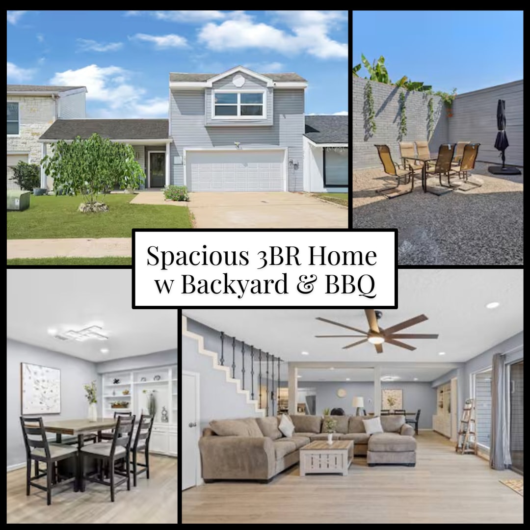 Welcome to your inviting Houston retreat with a lush jungle-inspired ambiance. This 3-bedroom, 2.5-bathroom home blends comfort and convenience, featuring a fully fenced private backyard with tropical vibes, garage parking for 3 cars, and pet-friendly amenities—perfect for families, business travelers, and long-term guests. ⭑CONTACT US FOR SEASONAL DISCOUNTS⭑