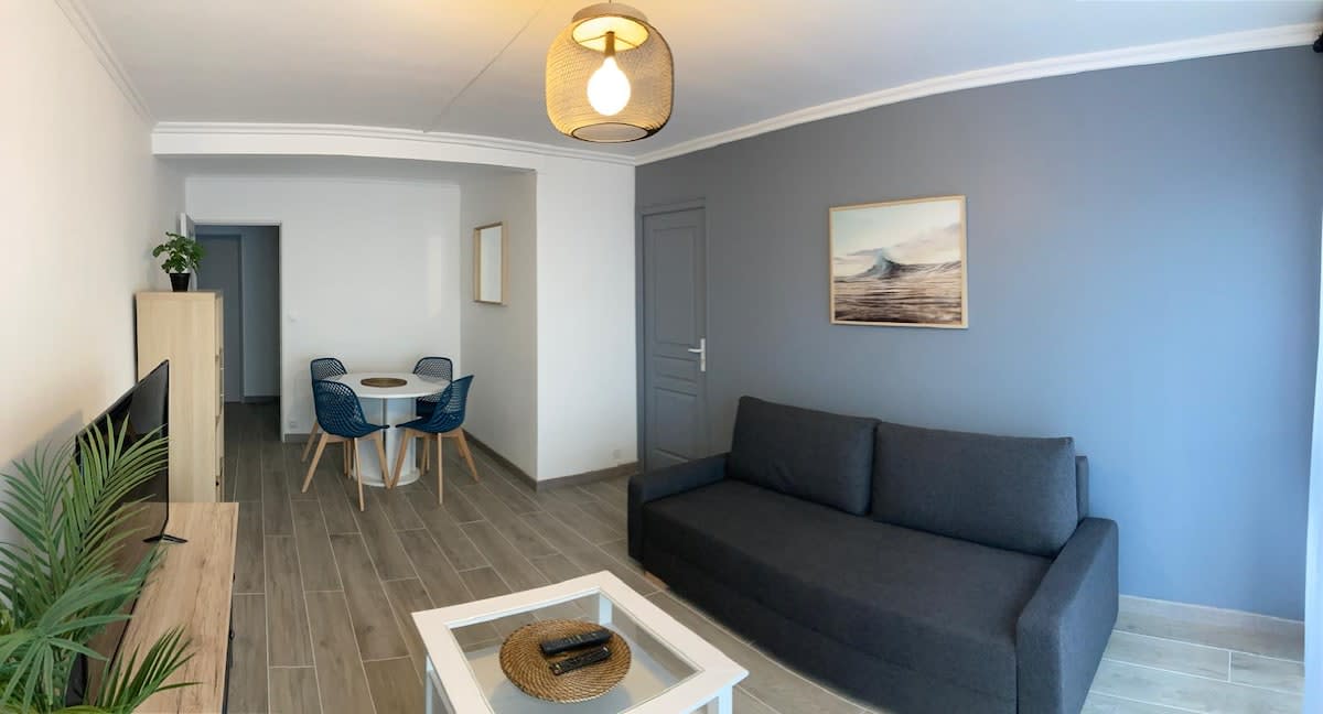 Bienvenue dans un logement chaleureux et confortable, inspiré de la série Friends! Il est situé en plein centre ville, à 2 pas de l’Espace Coty (entre gare et plage), avec restaurants, magasins et transports à proximité. L'appartement est composé d'un grand séjour avec canapé lit, et d'une chambre avec un lit double. Pour les réservations d'une journée ou d'une nuit, contactez-nous.