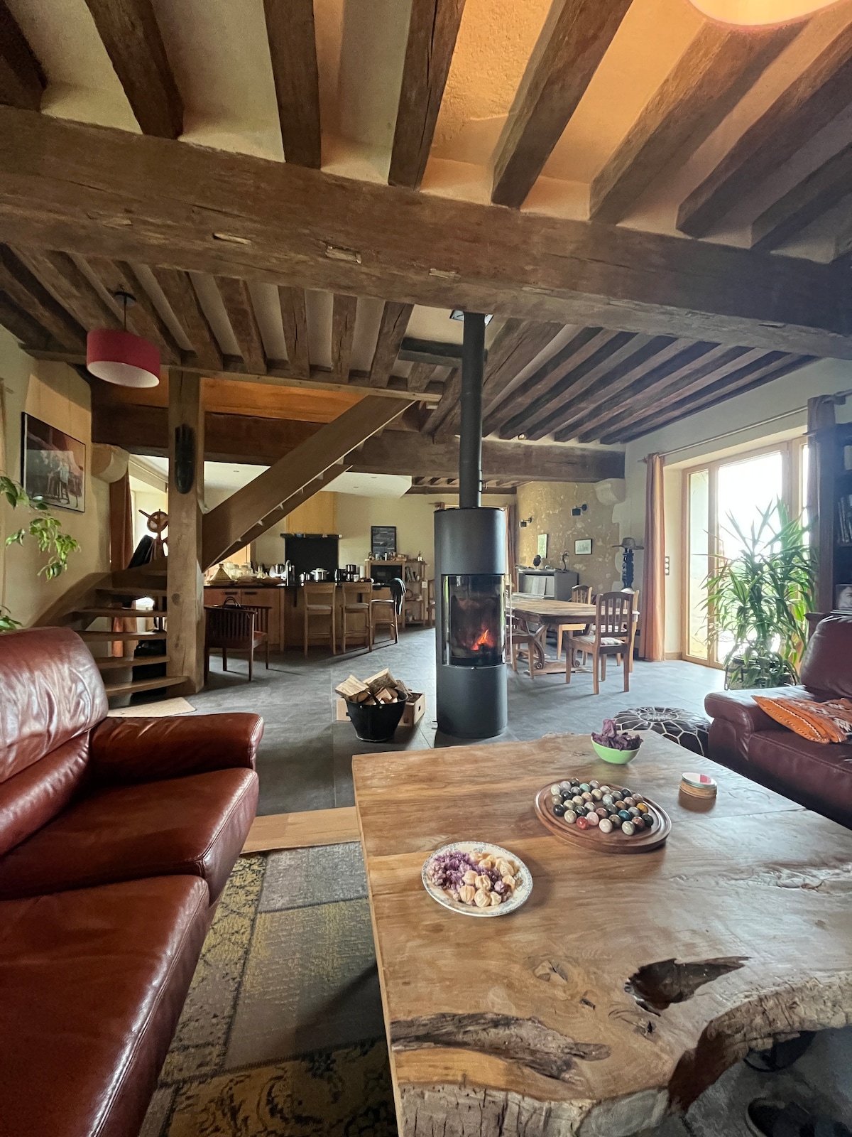 Í eina helgi skaltu gleyma áhyggjum þínum í þessu rúmgóða og afslappandi rými. Þetta bóndabýli er tilvalið fyrir stóra fjölskyldu og er staðsett í Sarthe-sveitinni, í 30 mínútna akstursfjarlægð frá Le Mans (15 mínútur með lest). Eigendurnir taka á móti gestum í samliggjandi og sjálfstæðu rými, þeir eru áfram til taks þegar þörf krefur.