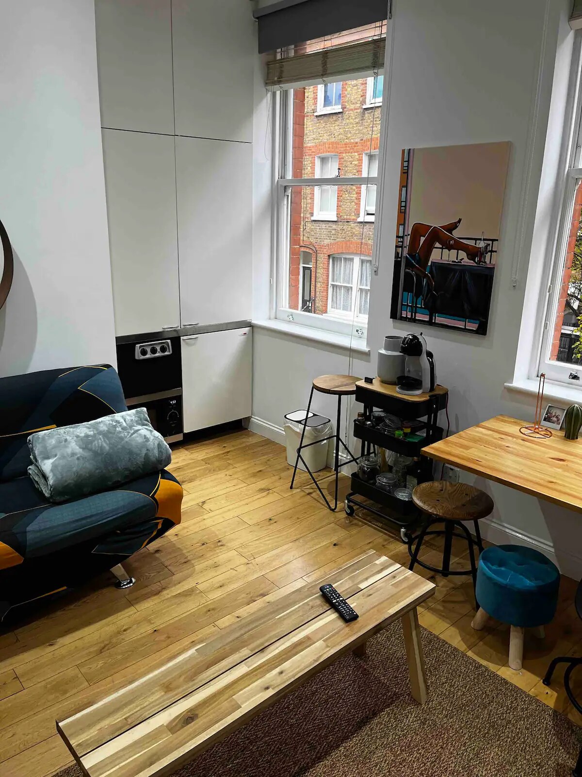 Upplifðu aðdráttarafl sögunnar og nútímalegan glæsileika í þessari nýuppgerðu stúdíóíbúð sem er staðsett í byggingu með 250 ára arfleifð. Aukaglerjun skapar rólegt andrúmsloft en fullbúinn eldhúskrókur og einkabaðherbergi fyrir lúxus gerir þér kleift að slaka á og slaka á. Staðsetningin skiptir öllu máli og okkar er óviðjafnanleg. Í rólegri hliðargötu við Leicester Square ertu í nokkurra mínútna fjarlægð frá West End og Soho með óviðjafnanlegum samgöngutengingum til að skoða þig frekar um.