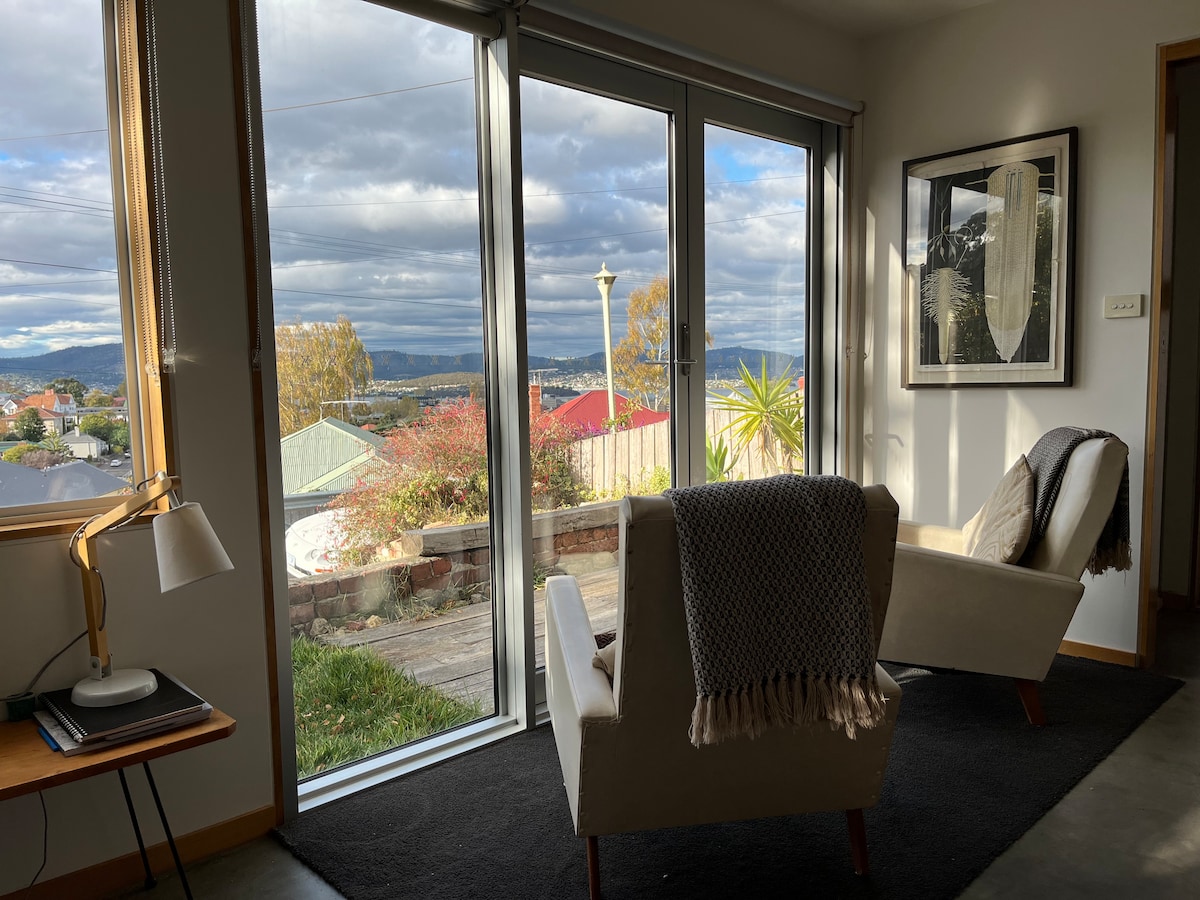 View Studio is a place to relax and spend some time taking in the stunning vista of Hobart, kunanyi/Mount Wellington and River Derwent. You will enjoy full private access to this modern seperate studio and deck area. Soak in the luxurious stone bath after your day's travels and take in the city lights. Situated on Hobart's Eastern Shore, View Studio is 10 minutes travel to the city and Salamanca, 20 minutes to MONA or Richmond and Coal Valley Wineries and 15 minutes from Hobart Airport.