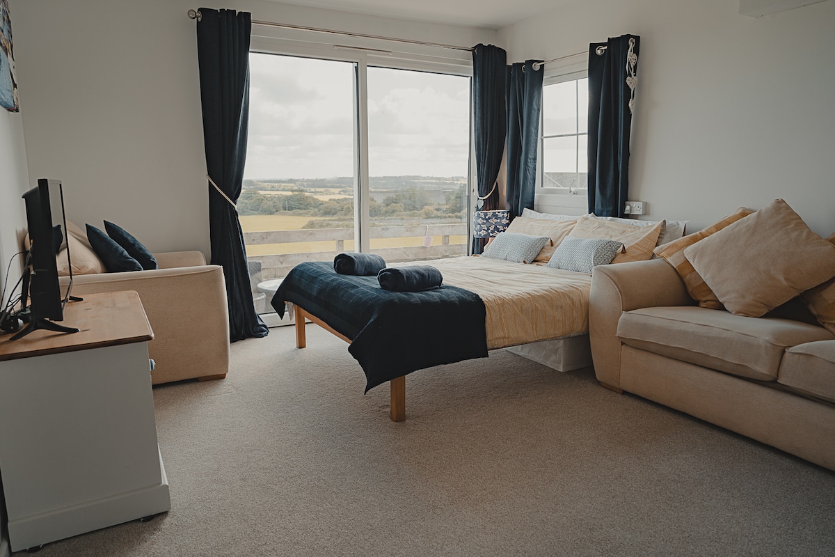 Stúdíóið er fallega innréttað, bjart og rúmgott rými á lóð heimilisins okkar. Með langt að ná töfrandi útsýni yfir sveitina. Það er um það bil 3 km frá St Austell og þægilegt fyrir strendur, Eden verkefni, Heligan Gardens, Charlestown og yndislegar gönguferðir um landið. Vegna Covid 19 hef ég innleitt varúðarferli fyrir þrif til öryggis fyrir þig, þar á meðal notkun á UV sótthreinsilampa sem verður notaður milli gesta.