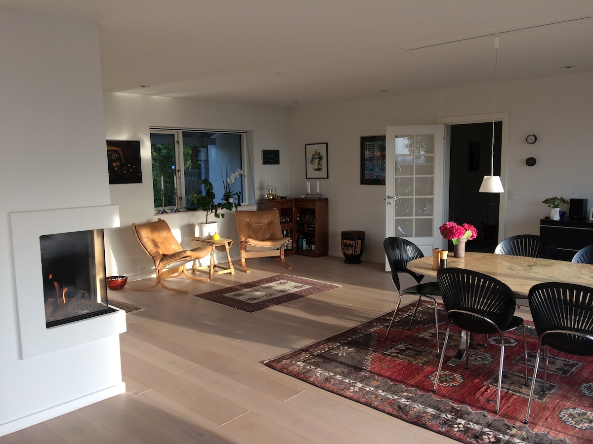 Nútímalegt fjölskylduvænt hús við stöðuvatn með beinum aðgangi að vatninu og aðeins 30 mín akstur norður frá miðbæ Kaupmannahafnar og 5 mín akstur að hafinu með ströndinni. Húsið er tilvalið fyrir fjölskyldu sem vill sjá Kaupmannahöfn og hafa það einnig gott í afslöppun. Húsið hefur verið notað í nokkrum alþjóðlegum tímaritum innanhúss og er fullkominn staður fyrir þig sem kann að meta fallega hönnun á afslappaðan og afslappaðan hátt. Húsið fékk nýtt eldhús árið 2022 og einnig nýja einkabryggju við vatnið.