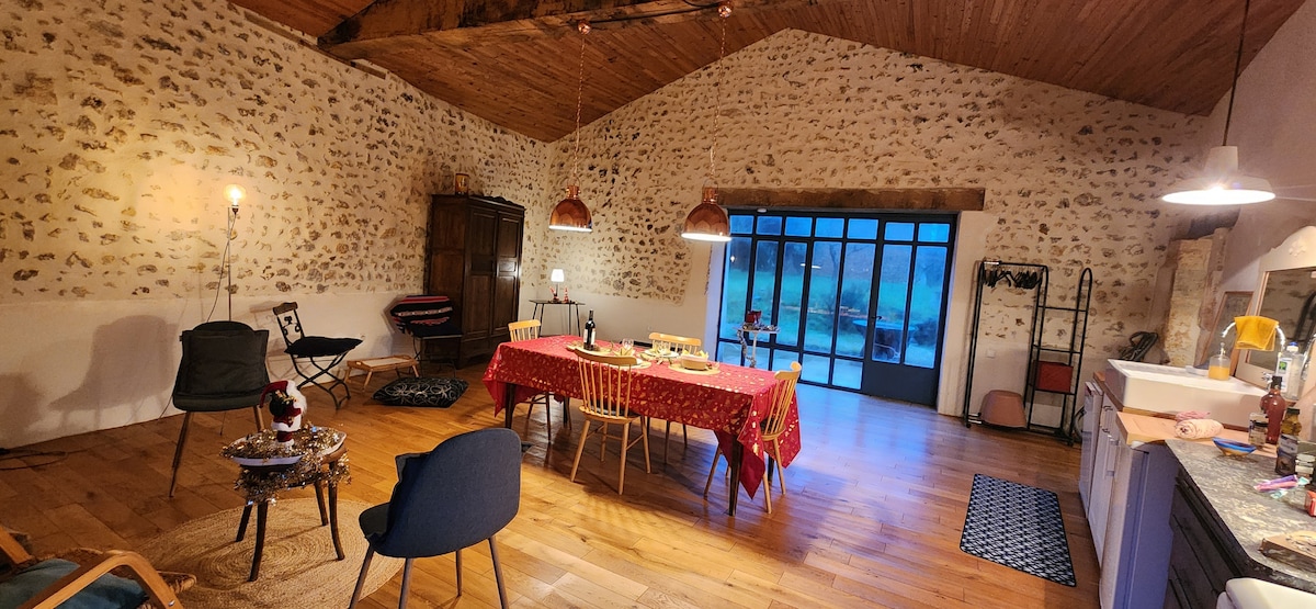 Verið velkomin í „La Suite“ þar sem eignin þín er ást og afslöppun við hlið Angouleme. Þessi töfrandi sjálfstæða svíta úr augsýn er hönnuð fyrir þá sem vilja skapa ógleymanlegar stundir fyrir sérstakt tilefni eða bara koma þér á óvart. Flottur, djarfur, þessi notalegi staður mun blasa við þér með stórkostlegu útsýni og sólsetri augliti til auglitis. Komdu og njóttu nýrra upplifana fyrir rómantíska dvöl eða helgi.