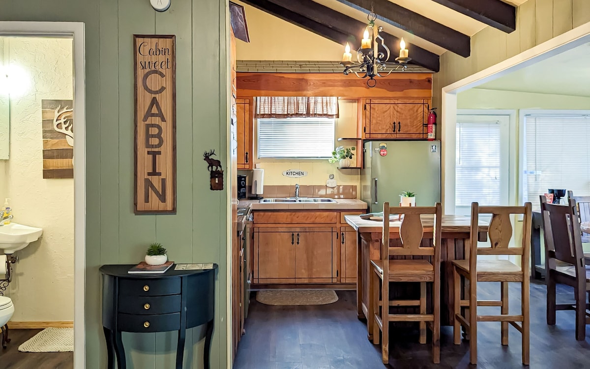 Fullkomlega enduruppgerða kofinn okkar er staðsettur í „Old Ruidoso“. Það er í göngufæri frá Midtown og í stuttri akstursfjarlægð frá Grindstone-vatni, Ski Apache og Ruidoso Downs Race Track. Við erum með grill á veröndinni aftan með sætum og heitan pott í bakgarðinum. Á veröndinni okkar er tveggja manna róla á veröndinni þar sem þú getur fengið þér kaffibolla á morgnana eða vínglas eftir hádegi. Okkur finnst við vera tíðir gestir á Airbnb að við höfum útvegað þér frábæra gistiaðstöðu.