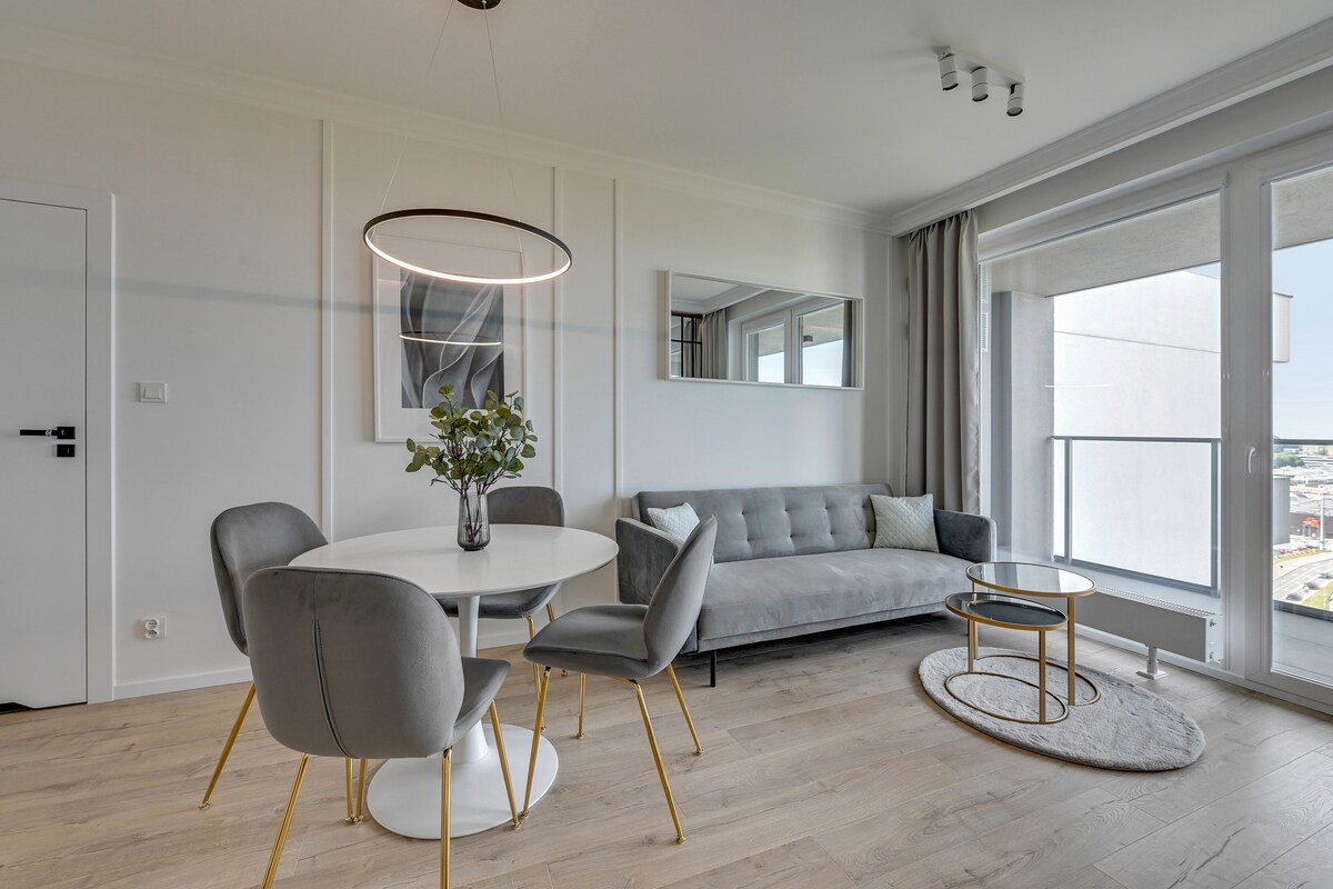 Gdynia Modern Tower er dásamlega notaleg 41 fermetra íbúð. Hún er vel búin og mjög stílhrein. Allir sem heimsækja Gdynia munu líða vel hérna. Þægileg, skörp, hvít rúmföt og tveir koddar fyrir hvern gest eru staðalbúnaður. Ómissandi snyrtivörur fylgja einnig, þar á meðal sjampó og þægilega ilmgóð sturtusápa. Kynningarpakki með tei, kaffi og helstu kryddum mun einnig gera dvöl gesta okkar enn betri.