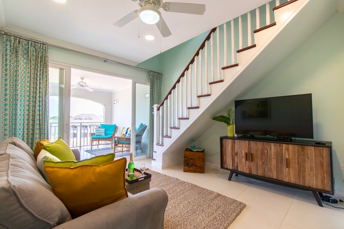Slappaðu af í þessari stórkostlegu, friðsælu og afslappandi íbúð með tveimur svefnherbergjum og tveimur baðherbergjum sem eru fullbúin (A/C) á jarðhæð. Slakaðu á með Netflix í öllum svefnherbergjum. Njóttu Disney+, Netflix og kapalsjónvarps í notalegu stofunni á snjallsjónvarpinu, 55". Gakktu að sveitabúðinni og eldaðu svo eftirlætis máltíðina þína í fullbúnu eldhúsinu og njóttu þín í kringum borðstofuborðið eða á veröndinni með útsýni yfir sjóinn. Æfðu þig í líkamsræktinni, spilaðu tennis og kældu þig svo niður í sundlauginni á meðan þú leikur þér að sundlaug við barinn. Aðgangur að strönd er innifalinn