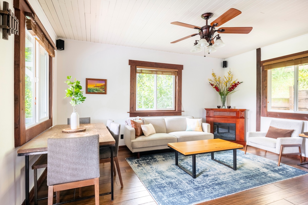 Tucked beneath towering redwoods, Harrison Creek Cottage is a place to slow down and truly unwind. Guests call it magical—and it is. Thoughtfully designed with vintage charm and modern comfort, every detail feels warm and welcoming. Soak in the hot tub under the stars, sip coffee among the trees, and enjoy peaceful privacy just minutes from the best of the Russian River Valley. This isn’t just a stay—it’s a feeling you’ll want to return to.