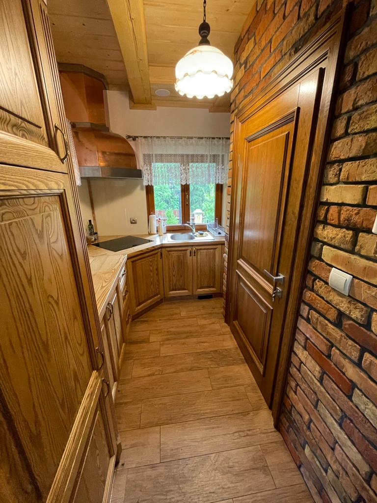 Bústaður allt árið um kring í þorpinu Oszkina. Sejwa-vatn er í 200 metra fjarlægð. Við jaðar skógarins. Á jarðhæð er stofa tengd fullbúnu eldhúsi. Stofan er með beinan útgang út á verönd. Baðherbergi með sturtu. Á efri hæðinni eru tvö herbergi. Annað er með hjónarúmi, hitt er með tveimur einbreiðum rúmum. Hvert herbergi er með loftkælingu, fatahengi, kommóðu. Bílastæði . Á staðnum er gufubað. Þar er einnig grill, útihúsgögn og sólbekkir. Öll lóðin er afgirt.