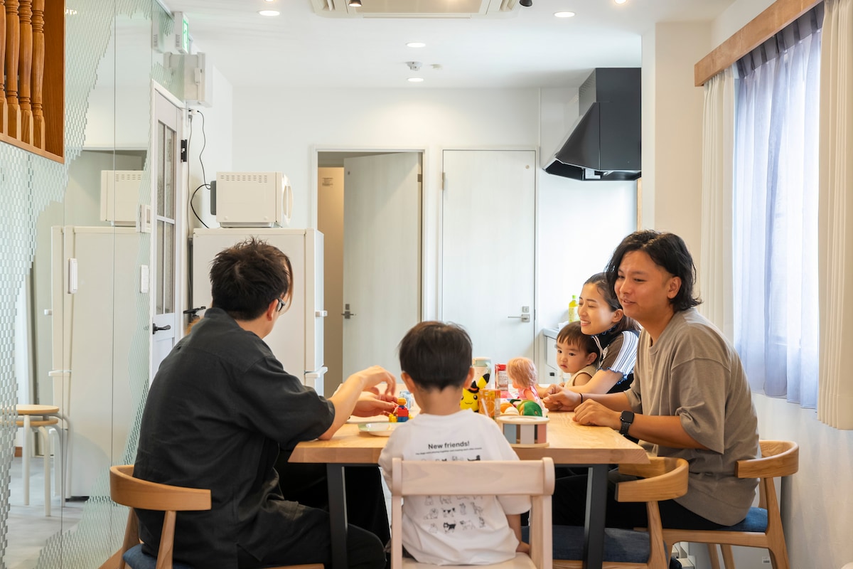 Húsið mitt er í 3 mínútna göngufjarlægð frá JR Ryogoku-stöðinni.Þú getur notað aðra hæð byggingarinnar upp á 5. hæð í einrúmi.Það eru þrjú baðherbergi, þrjú salerni og tvö eldhús. Það er þægilegt fyrir fjölskyldur og hópa með fjórum aðskildum svefnherbergjum. Það var endurbyggt árið 2025 sem gerði það að hreinu og þægilegu rými. Við stefnum að því að vera barnvæn gistiaðstaða.Hér eru nægar birgðir fyrir börn. Ryogoku er þekkt sem borg súmó. Margir veitingastaðir eru á staðnum, þar á meðal verslanir Chanko Nabe.Vinsamlegast notaðu húsið mitt sem bækistöð og njóttu dvalarinnar eins og þú búir í báðum löndum. [mikilvægt] - Engin lyfta í þessari byggingu. -2. hæð er aðskilin eining.Inngangur á annarri hæð. -3-5. hæð er maisonette-eining.Inngangurinn er á 3. hæð. Hægt er að leigja -2 hæðir og 3-5 hæðir í settum.Einingin er þó aðskilin.Ef þú vilt fara fram og til baka þarftu að fara út um innganginn og nota sameiginlegu stigana til að komast inn um hvern inngang. Það er bar með rólegu andrúmslofti á -1 hæð.Ekki tala hátt fyrir framan innganginn.