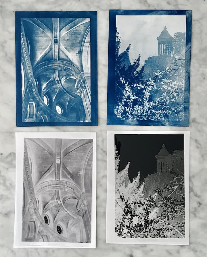 Myndir og Cyanotypes í frönsku miðaldaþorpi