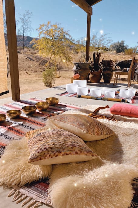 Kelly2019-03-03T00:00:00ZHvaða gimsteinn. Að vera fær um að ganga niður í Saloon fyrir nokkra kvöldmat og grípa svo góðan morgunmat svo nálægt á krossgötum Cafe voru ákveðin plús-merkingar. Rýmið er að bjóða, létt og gott, en ferðast með vini, við héldum að við eigum eigin rými okkar. Sveifluðu hangandi hengirstökkin voru fullkomin til að drekka sól með kaffinu mitt á morgnana, heitur pottur var yndislegt og eldhúsið var svo gott. Elskaði að sturtu líka! Nálægt Joshua Tree garðinum og svo mörgum öðrum áhugaverðum staðbundnum blettum sem við gætum hafa kannað í miklu lengur. Þú gætir heyrt umferð og gelta hunda frá tími til tími í garðinum, en það kemur með því að vera í hverfinu nálægt þjóðveginum. Garðurinn sjálft fannst einka og eyðimörkin var falleg. Ég myndi örugglega koma aftur.
