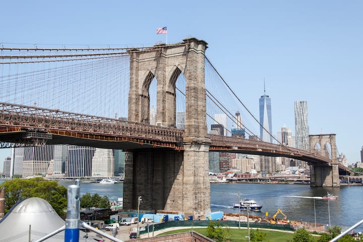 Hjólaðu yfir Brooklyn-brúna og við vatnið