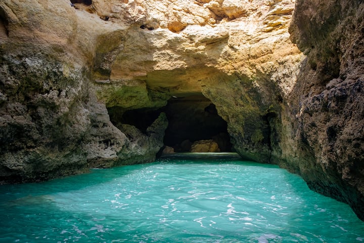 Sigldu að sjóhellum við strönd Algarve