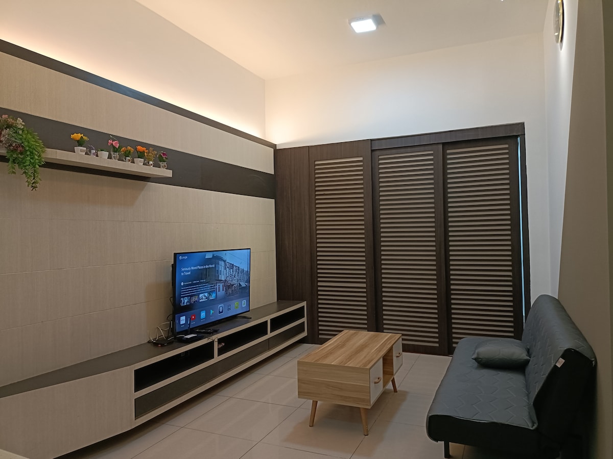 Ef þú vilt svítu nálægt borginni en í burtu frá hávaða borgarinnar.Húsiđ mitt verđur ákjósanlegasta ákvörđun ūín. Í 5 mínútna akstursfjarlægð frá miðborginni getur þú notið útsýnisins yfir hafið á leiðinni og náð til borgarinnar sem iðar af lífi. Staðsett á 10. hæð, það er ekki draumur að vakna á hverjum morgni til að horfa á sólarupprás! Ertu að leita að stað í nágrenni við borgina? Eignin mín er fullkominn staður fyrir þig! Staðsett í aðeins 5 mínútna göngufjarlægð frá miðbænum (í aksturfjarlægð á háannatíma). Einnig er aðeins 5 mínútna ganga að fallega Tanjung Lipat, þar sem þú getur notið sólarupprásar og sjávargolunnar á meðan þú færð þér göngutúr. Þetta stúdíó er upplagt fyrir litla hópa og fjölskyldu.