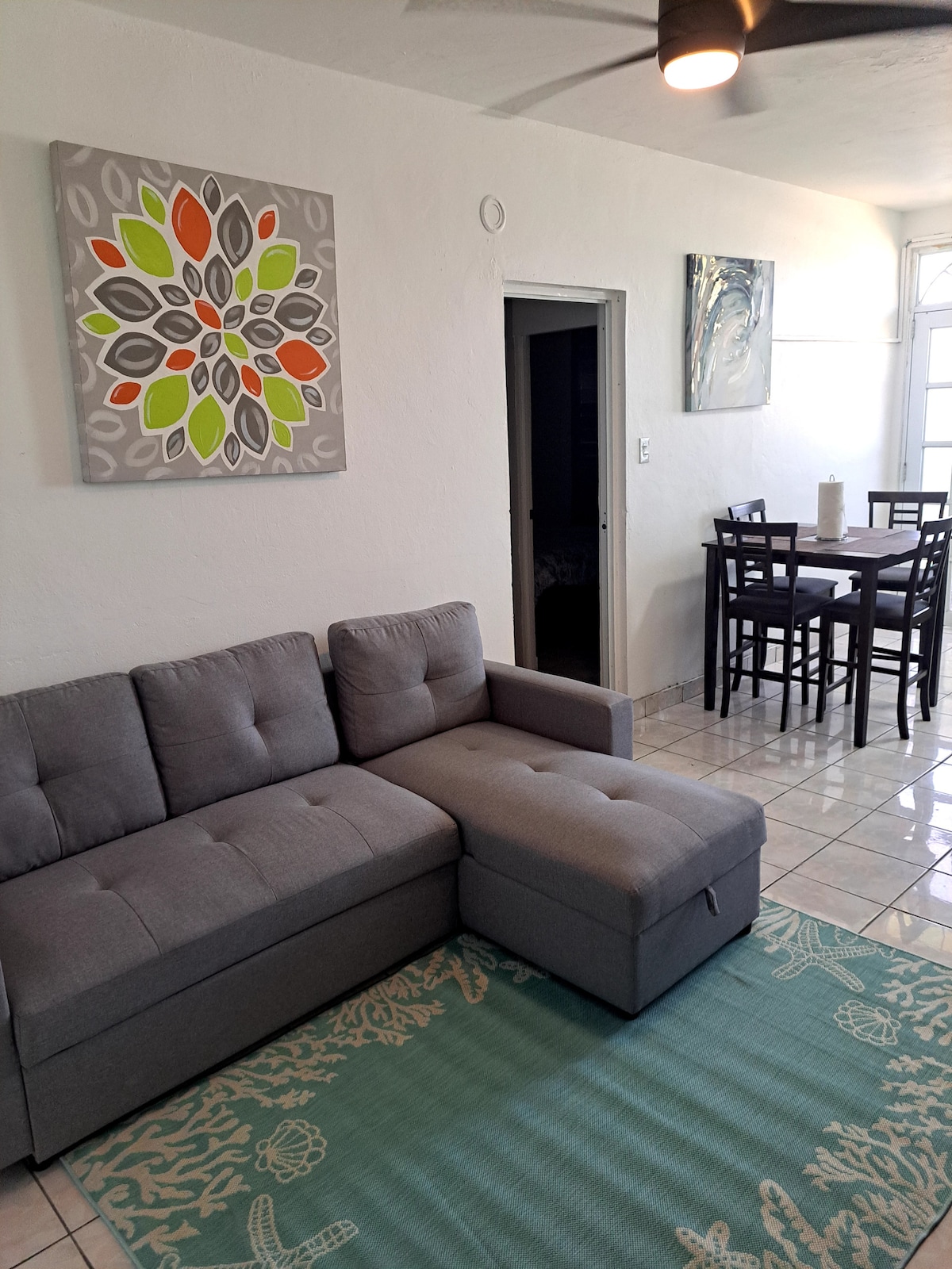 Notalegt pláss fyrir allt að 5 gesti (miðað við fullorðna og börn) með stórri verönd og verönd. Sjálfstæður inngangur, rólegt umhverfi og mjög miðsvæðis á veitingastöðum, strönd, flugvelli, verslunarmiðstöðvum og ferðamannasvæðum. Ps: REYKINGAR BANNAÐAR INNI í eigninni... viðurlög $ 150 ALLIR HLUTIR Í EININGUNNI eru YFIRFARNIR við ÚTRITUN, EF ÞÚ HEFUR BROTIÐ eða SKEMMT EITTHVAÐ Í EININGUNNI VERÐUR VIÐURLÖG HÁÐ KOSTNAÐI TJÓNSINS. Lestu HÚSREGLUR og FYRIRVARAR vandlega til að fá frekari upplýsingar.