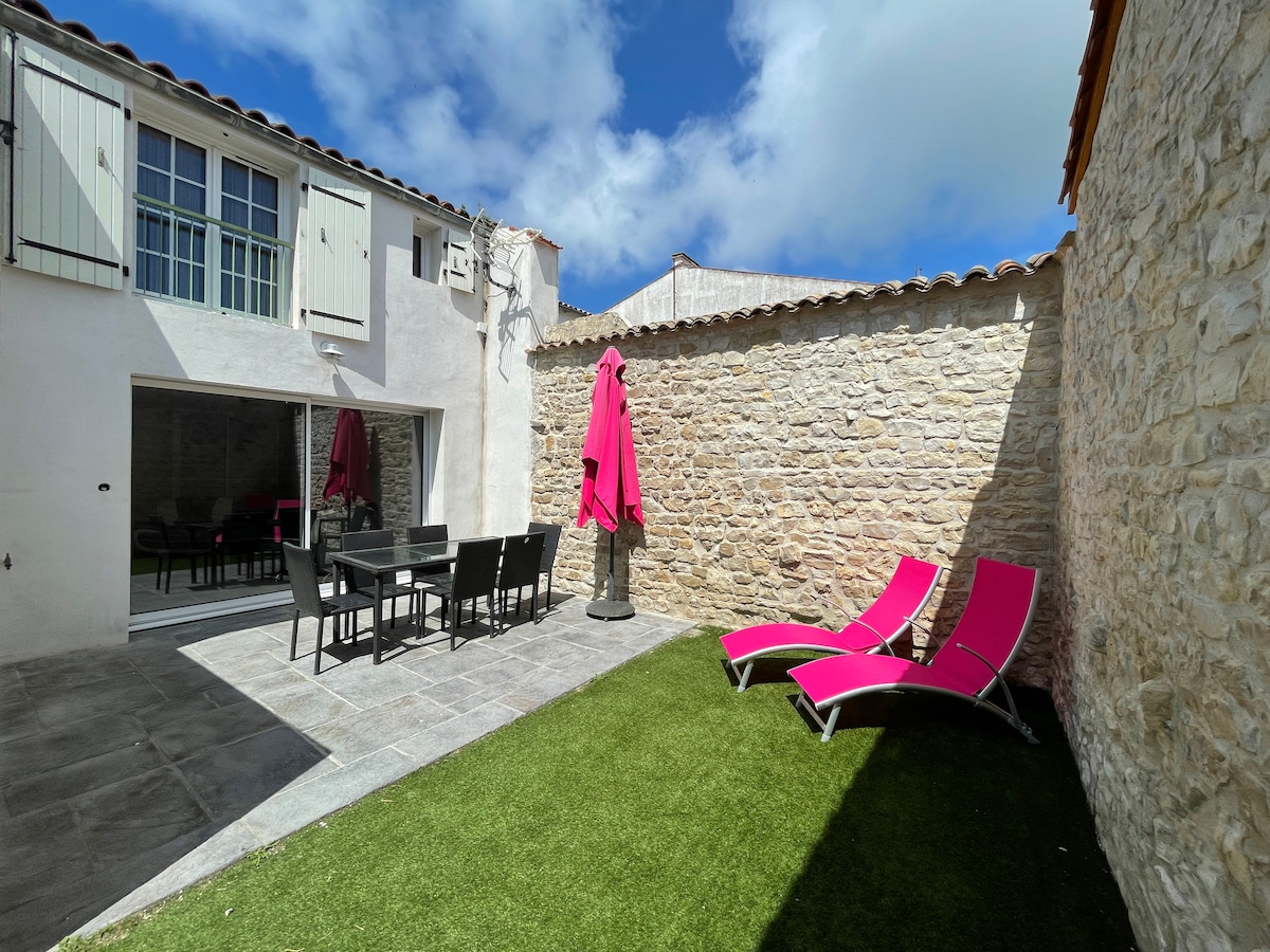 Heillandi einbýlishús á einni hæð sem var algjörlega gert upp í janúar 2025. The 75 m2 house is located in the heart of the village of Rivedoux-plage, just 30 m from the covered market and food shops. Samanstendur af tveimur fallegum svefnherbergjum og vel búnu eldhúsi, baðherbergi með sturtu og balneo-baðkeri. Falleg verönd sem snýr í suður og samanstendur af borði, 4 stólum og grillhlíf býður þér að slaka á með fjölskyldunni. 50 m2 garður fullkomnar þetta fallega ytra byrði.