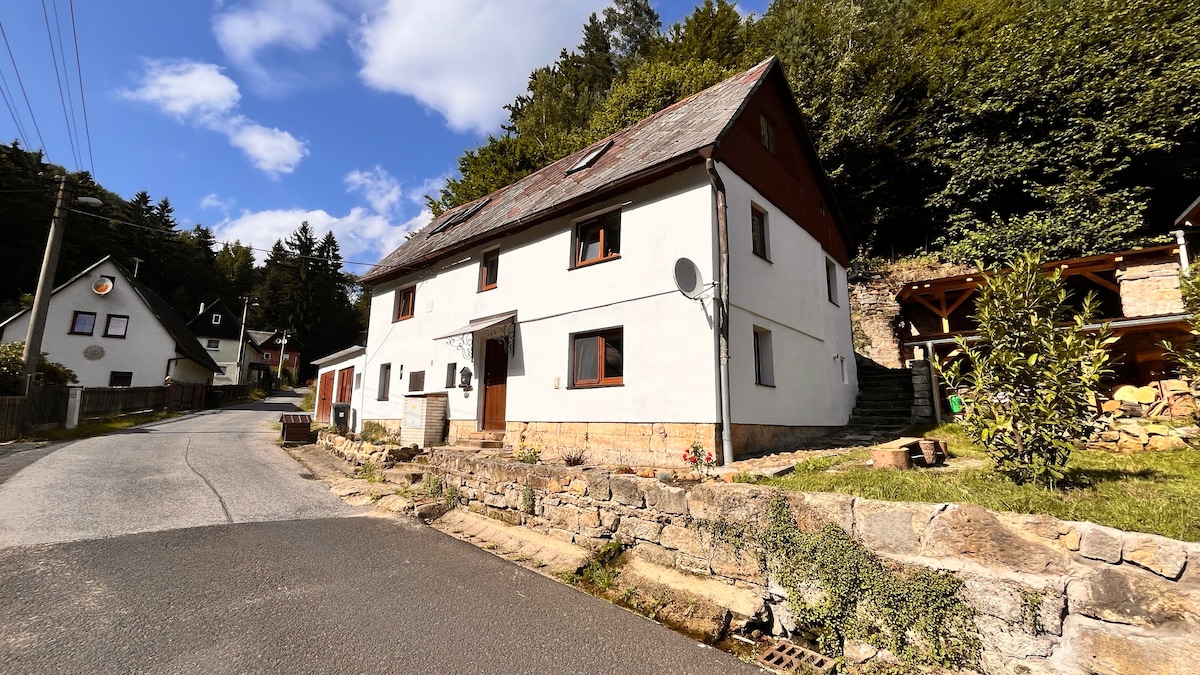 Athyglisverður staður rétt í þjóðgarðinum í Bohemian í Sviss. Pravčická hliðið 5km, Samkeppni 2km . Það eru tvö herbergi, eldhús, salerni, eftir samkomulagi, einnig stór garður (2000m) með grill, rennibraut, trampólín, frumskógur gym, sandpit, hentugur fyrir börn. Afgerandi staður í hjarta Tékklands- Þjóðgarður í Sviss, tilvalinn fyrir barnafjölskyldur, risastór garður (2000m) grill, trampólín, rennibraut, sandkassi, sveifla, einkabaðherbergi
