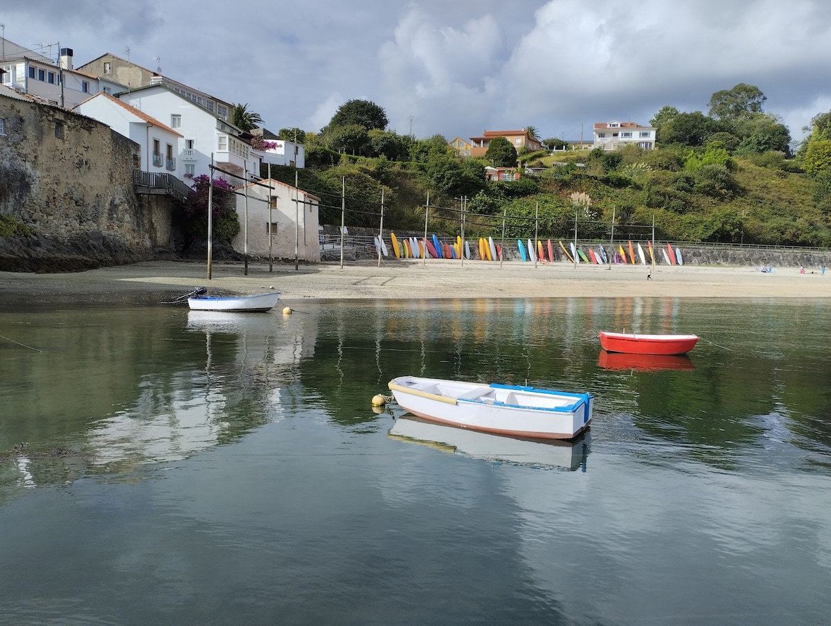 Þú munt hafa ströndina beint fyrir framan húsið þitt og þú munt vera í miðbænum á sama tíma. Tilvalið fyrir gönguferðir meðfram göngusvæðinu, höfninni, ströndinni... matvöruverslunum, veitingastöðum og afþreyingu nálægt heimilinu. Aðeins nokkrar mínútur frá öðrum borgum og bæjum eins og Coruña, Betanzos eða Miño. Það eru tvö svefnherbergi, eitt með hjónaherbergjum og eitt með tveimur einbreiðum rúmum. Njóttu þess að vinna í fjartengingu við þægilegt skrifborð við vatnið í friðsælu umhverfi. Með 600 Mbps háhraða þráðlausu neti.