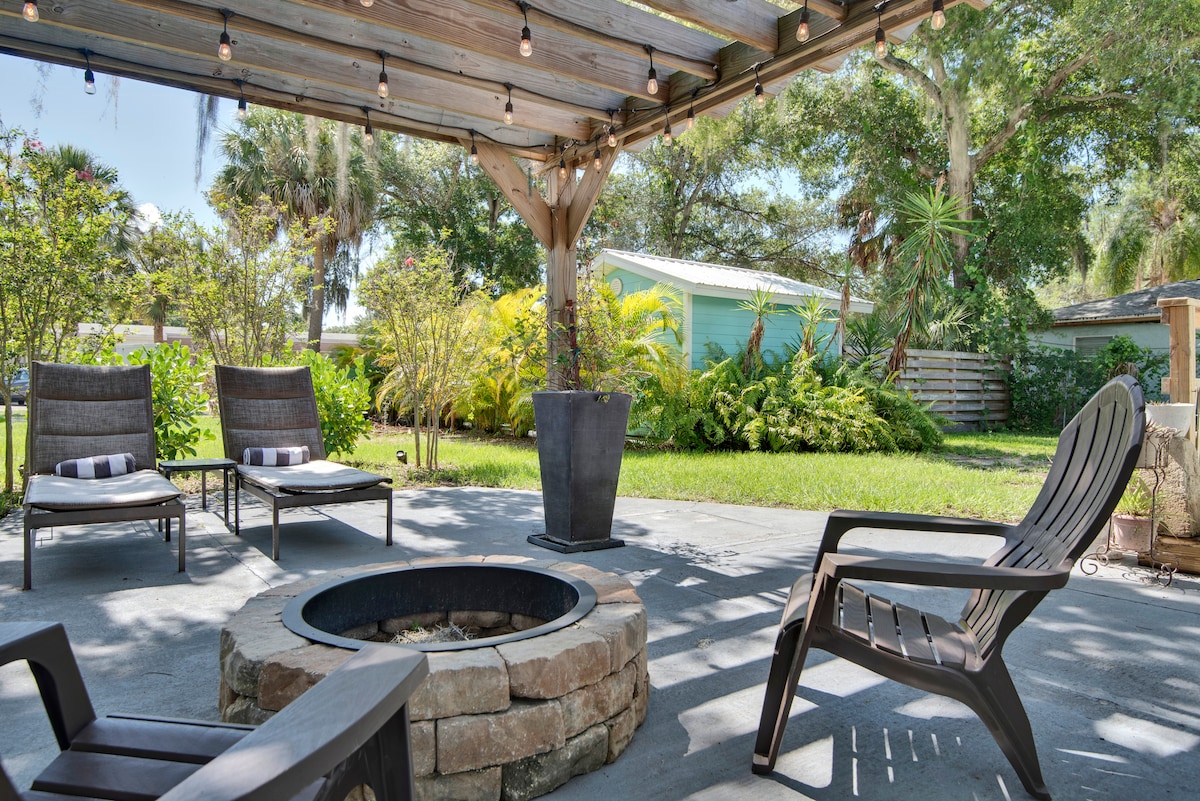 Safety Harbor Main Street Hide Away. 3 blocks away from the beautiful Safety Harbor Main street and all its charm. Veitingastaðir, tískuverslanir, verslanir, barir, söfn, hin fræga Safety Harbor Spa og bryggja, fullkominn staður til að koma auga á manatees og fá sér sælkerakaffi á sama tíma! Private Guest House with 900 sqft 1bed/1 bath .Ideal size for 1-2 couples or a family of 4 (Family with kids welcome). Einkaverönd í bakgarði með eldstæði. Þetta er reyklaus eign. Komdu og njóttu! Gæludýr eru ekki leyfð.