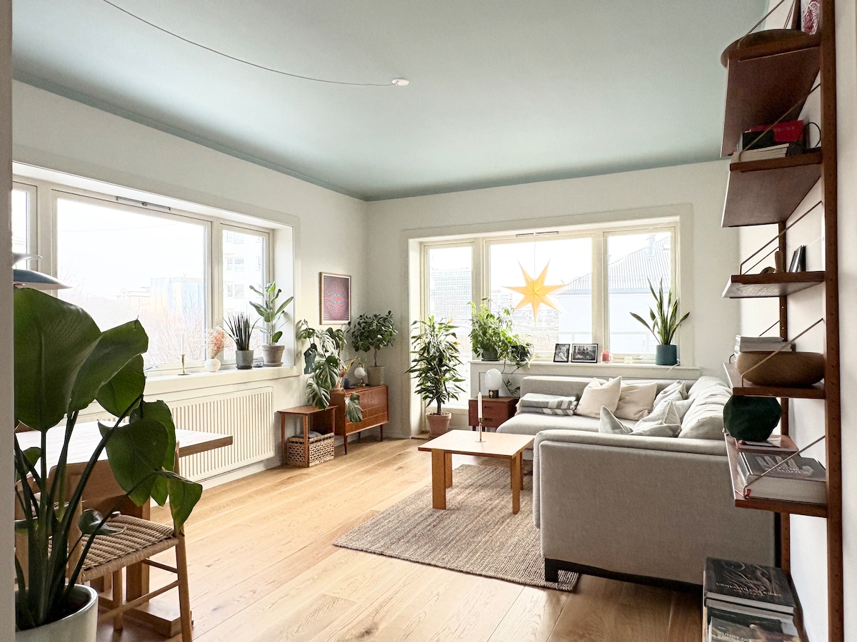 Velkomin í ofurnotalegu og nútímalegu íbúðina okkar sem er full af listaverkum og staðsett í hjarta Torshov-hverfisins, í miðborg Ósló. Við erum í sögulegri, ítalskri íbúðabyggingu frá 1919. Eignin okkar er einstök blanda af sjarma gamla heimsins og nútímalegum þægindum. Íbúðin er sannkölluð gersemi, hönnuð með snjöllum lausnum sem gerir hana að stílhreinum og þægilegum gististað, bæði fyrir útfærslur, frídaga eða vinnuferðir. Eignin okkar skín bæði sumar- og vetrartímabil.