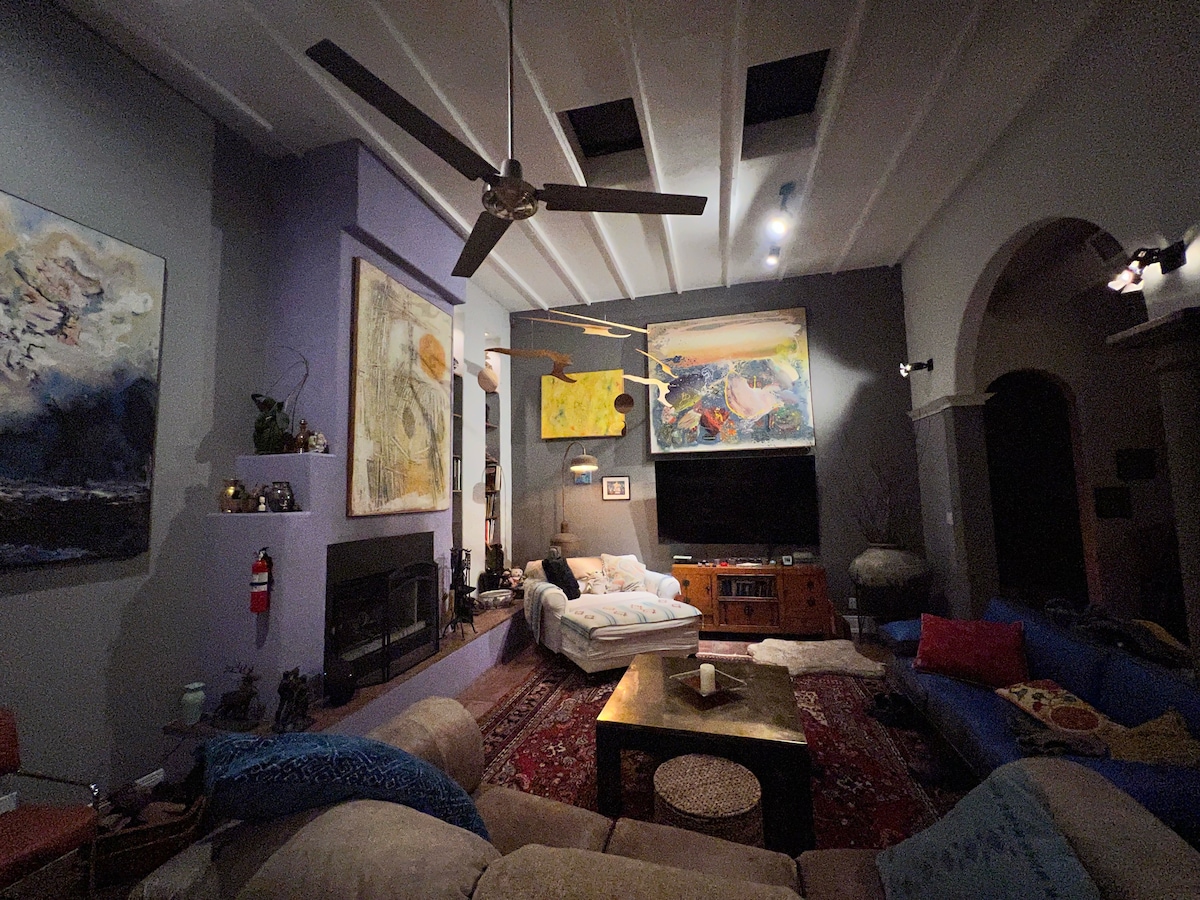 Take it easy at this unique and tranquil getaway. Our condo is as unique as Tucson is. It reflects our ‘lil town that could’ in that it is artsy, beautiful, interesting and comfortable. The condo reflects some of the Spanish colonial styles with modern touches. With the pluses of local art, near central location, easy access to shops, markets, restaurants, UofA and downtown, and bus lines right in the middle of Tucson, tucked away behind lush desert flora grounds feeling so private and quiet.