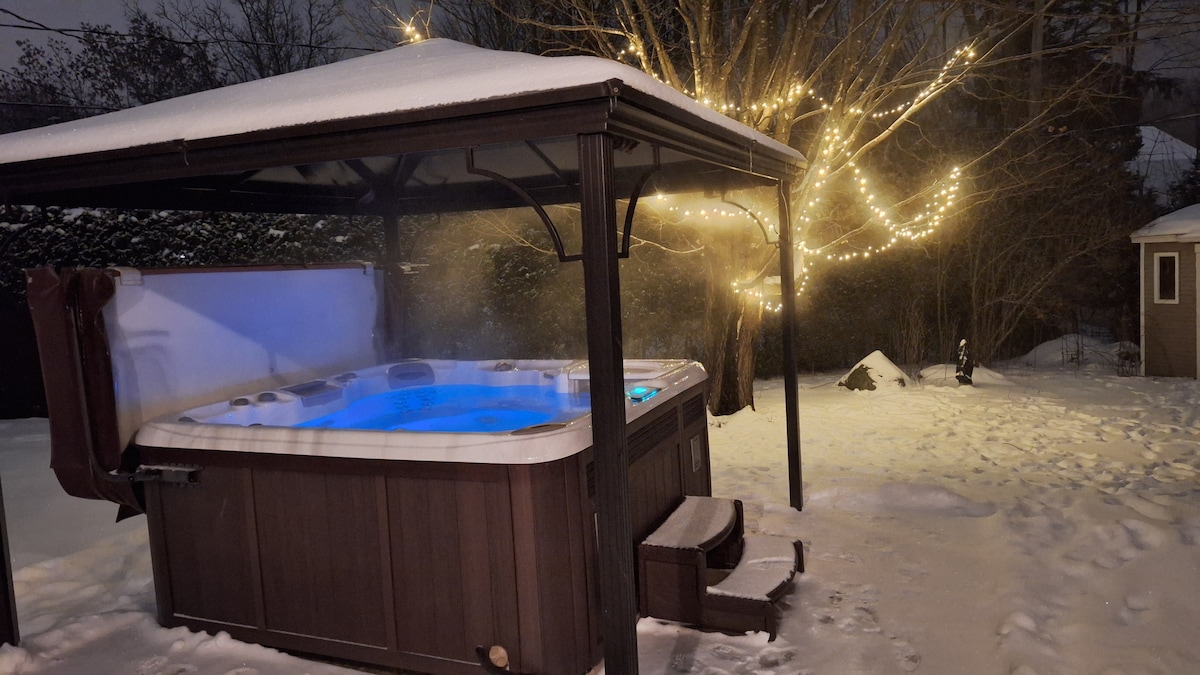 Í mjög ljósum kjallara 2021 , 2 svefnherbergja íbúð. 2 queen-rúm og 1 svefnsófi í stofunni, eldstæði 1 fullbúið baðherbergi með keramiksturtu. Göngufæri frá veitingastöðum og verslunum í miðbæ Bromont. 3-4 mínútna akstursfjarlægð frá skíðahæðinni og vatnagarðinum. 5 mínútna akstursfjarlægð frá Centre équestre de Bromont. 15 mínútna akstursfjarlægð frá Granby dýragarðinum. Það eru 2 heitir pottar í boði allt árið frá 9:00 til 22:00 og upphituð söltuð laug frá 1. júní til 15. september.
