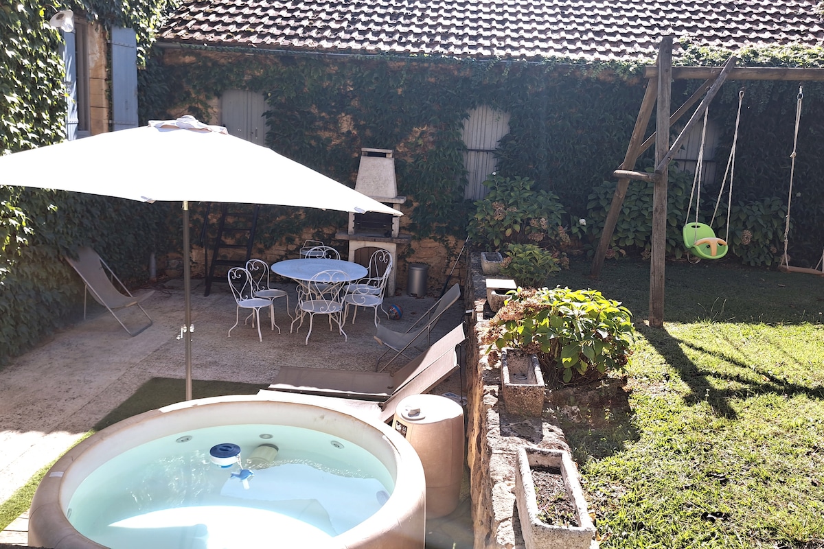 Sjálfstætt hús sem ekki er litið framhjá, gert úr steinum í gömlu þorpi. Þessi þægilegi staður mun tæla þig með snyrtilegum skreytingum, einkaheilsulindin verður vel þegin eftir langar heimsóknir, staðsetningu hennar til að skoða Sarlat, fallegu þorpin, Dordogne-dalinn,kastalann og alla staði sem þú verður að sjá. Tvær verandir til ráðstöfunar til að njóta góðrar máltíðar eða slaka á á sólbekkjunum. Skipt var um vatn í HEILSULINDINNI eftir dvöl. Laug til að deila eiganda.