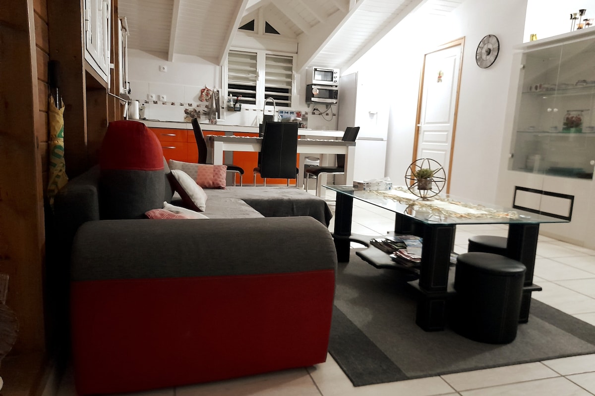 Þessi bústaður býður upp á ró og frið í hjarta náttúrunnar. Nálægt fjallinu fyrir göngufólk og sjóinn fyrir þá sem vilja kynnast hafsbotninum. 10 mínútna akstur að ómissandi Bologne-bruggstöðinni og 15 mínútur að stóra handverksmarkaðnum í Basse-Terre Ef þú elskar náttúruna þá er þetta lítið íbúðarhús fyrir þig. Valkostur fyrir fjóra gesti með viðbótargjaldi inniföldu í bókuninni.