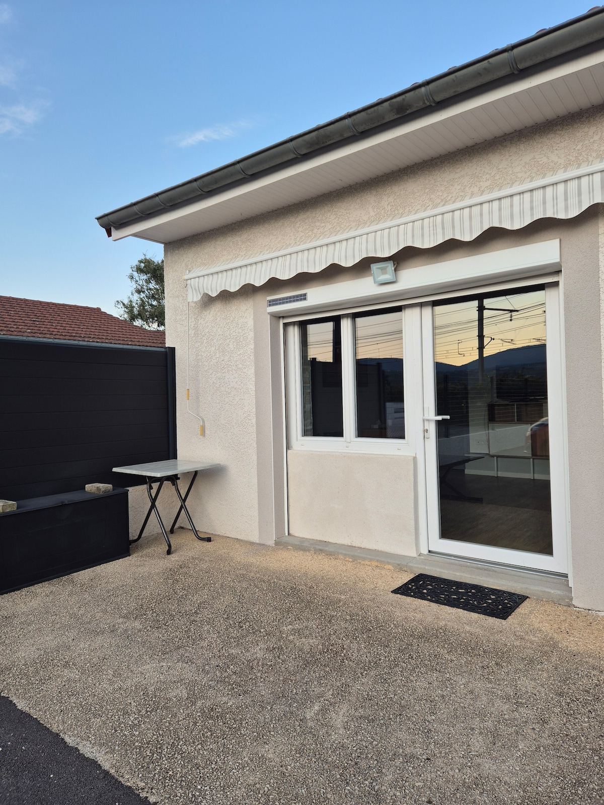 Nærri Via Rhone, lestarstöð í 6 km fjarlægð (30-40 mínútur frá Lyon) sem er aðgengileg á hjóli, fótgangandi, brúin er lokuð í eitt ár, sjálfsaðgangur á sama tíma en í meiri fjarlægð. Rútur eru í 2 km fjarlægð. Nálægt er útsýni yfir hæðirnar með vínekrum. Gisting fyrir vinnufólk á ferðalagi. 10 mínútur í burtu: St Alban staðurinn. Í gegnum gistingu, 18m2, sjálfstæð á jarðhæð hússins með skjólt útivið. E/O stefna, garðútsýni. Við afhendum lyklana . Ég hlakka til að taka á móti þér.