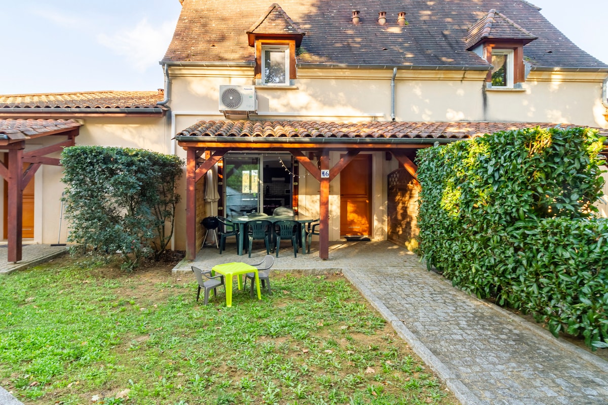Íbúð T2 af 55m2 á garðhæð í einbýlishúsi á hæðum Sarlat, rólegur, staðsett 8min göngufjarlægð frá miðalda miðju. Leigan samanstendur af: Útbúið eldhús - Þægileg stofa, flatskjásjónvarp, sófi -1 svefnherbergi (140 cm hjónarúm) nógu stórt til að rúma barnarúm - Sturtuherbergi (sturta) - Aðskilið salerni - Þvottaaðstaða utandyra - Ókeypis þráðlaus nettenging. Úti : - Stórt bílastæði, yfirbyggð verönd með garðhúsgögnum, grill