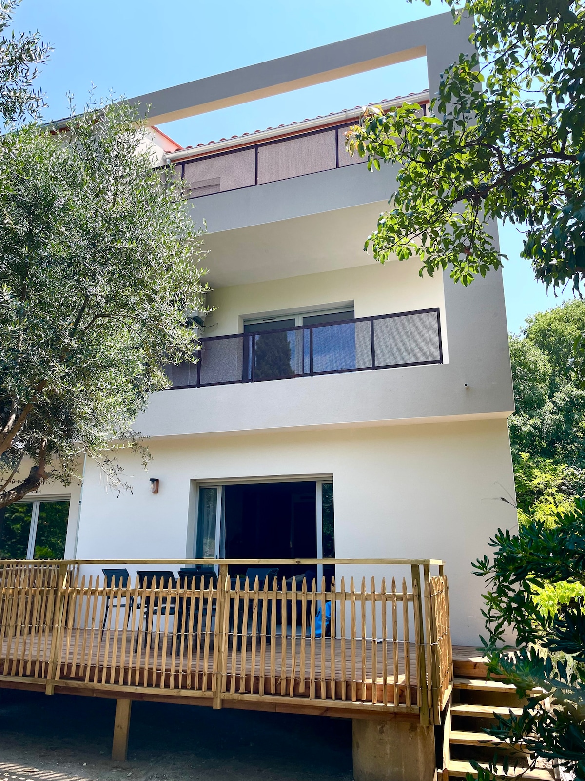 Heights of Banyuls-sur-mer, apartment with exceptional views of the Mediterranean and the Pyrenees. The accommodation consists of 2 bedrooms, a living room-kitchen of 33 m2 with 2 sofa beds, two wooden terraces with sea view, a second wooden terrace with landscaped garden. Perfect for long stays with plenty of amenities. Possibility of booking 2 additional bedrooms and bathroom on request. 1 parking space included in the rental. A few kilometers from Collioure