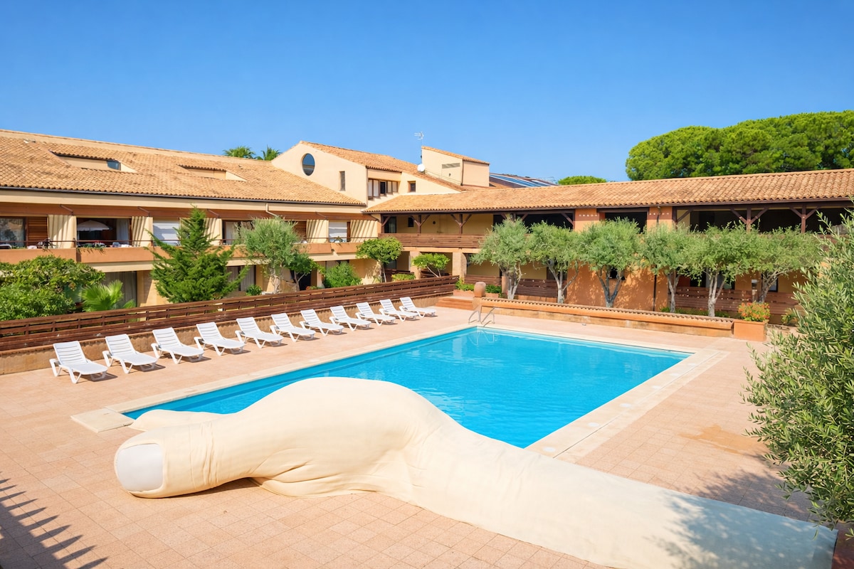 Beau T2 lumineux, mer à 20 mètres, WIFI, piscine