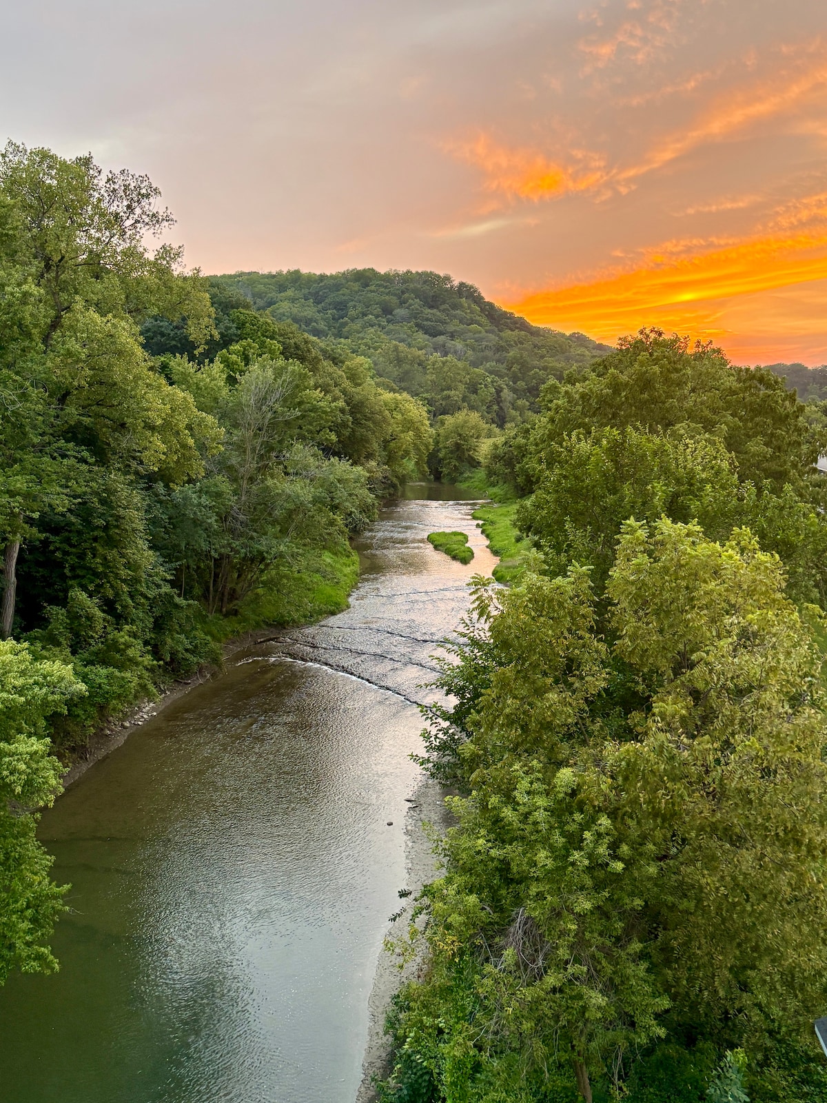 Slakaðu á og njóttu samvista í Creekside. Bústaðurinn er yndislegur staður fyrir einn eða tvo gesti eða fyrir hópa upp að 6. Gjald fyrir aukagest er USD 20 á mann eftir 2. Staðsett á býlinu okkar í aðeins 15 mínútna fjarlægð frá miðbæ Dubuque og Mississippi Riverfront. Skoðaðu skógana, akrana og lækina á býlinu okkar. Heimsæktu dýrin. Stutt akstur er að Mines of Spain, EB Lyons Nature Center, Eagle Point Park, Galena, Bellevue, Chestnut og Sundown skíðasvæðunum, tveimur klaustrum, handverksbrugghúsum og víngerðum.