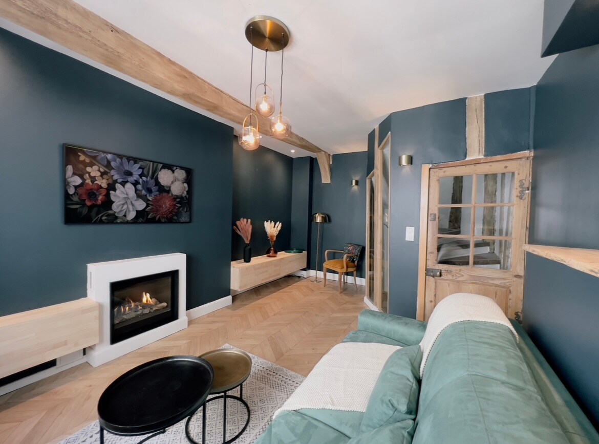 Eftir tveggja ára mikla vinnu komumst við loks þangað. Við höfum búið til þennan ástarkokk fyrir þig svo að þú getir hlaðið batteríin sem par eða skemmt þér með fjölskyldunni. Þetta óhefðbundna hús frá 1500, við vildum hafa það, umbreytti því, en á meðan við héldum áreiðanleika þess með hálfu timbri á framhliðinni, rauðu flísunum á stiganum, lofthæðinni á efstu hæðinni ... En við héldum það einnig og bjuggum það til svo að þér líki það líka. Njóttu núna 🤩