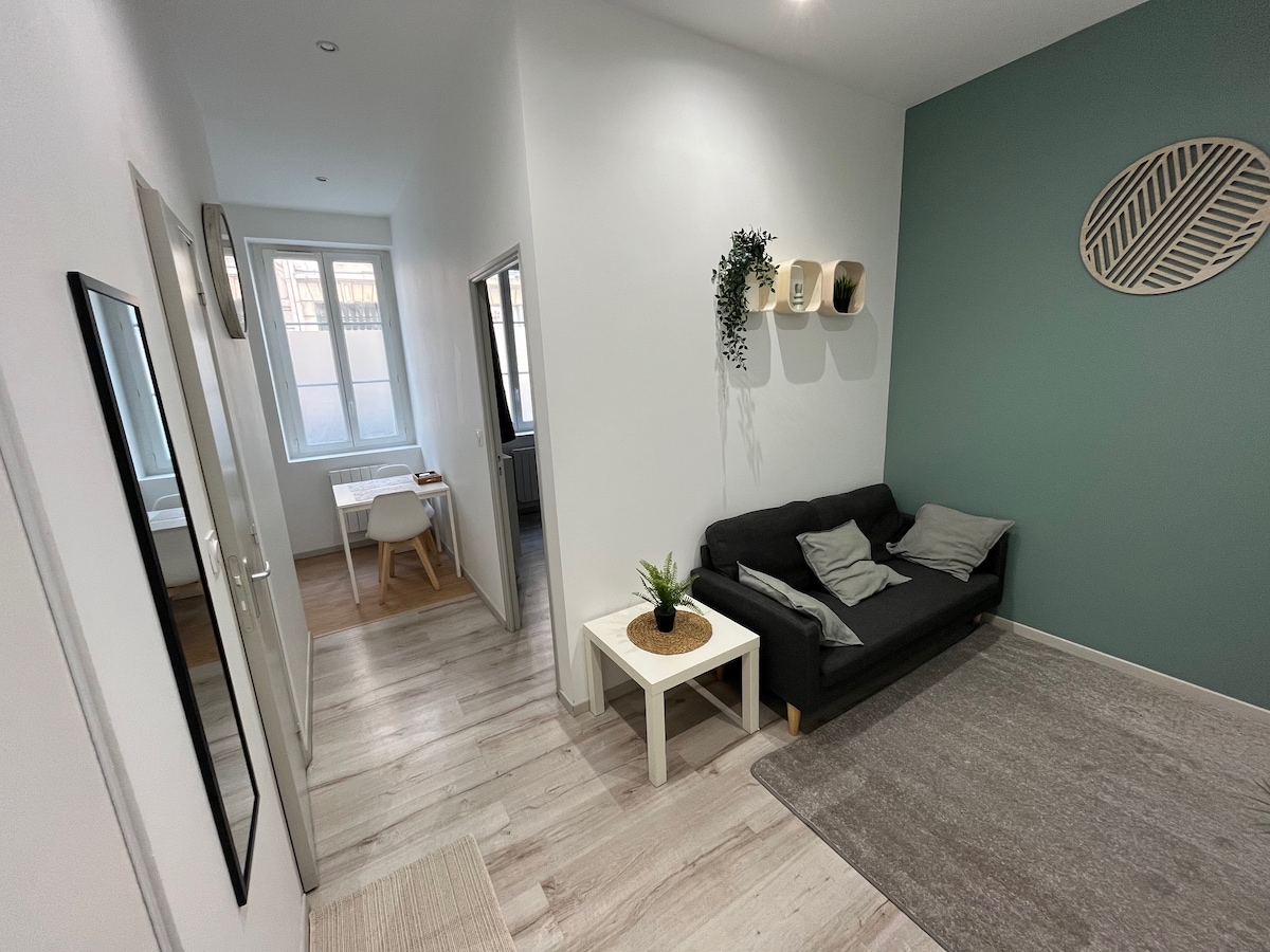 The Philippon Verið velkomin í heillandi fulluppgerða kokkteilinn þinn í hjarta miðbæjar Saint-Etienne. Þessi íbúð er með fullbúnu eldhúsi, einu svefnherbergi með beinu aðgengi að baðherbergi með baðkari. Rúmfötin og handklæðin fylgja. Nokkrum skrefum frá sporvagninum, Halles Biltoki, veitingastöðum, börum, kvikmyndahúsum Auðvelt er að leggja nálægt íbúðinni; hægt er að leggja við samsíða götuna eða leggja „Les Ursules“.