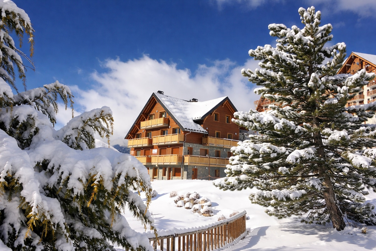 Frábært tvíbýli sem sameinar fjallasjarma og þægindi sem rúma 6-8 manns!! Mjög vel staðsett... 8 mín frá skíðalyftunum fótgangandi sem og verslunum... eða 3 mín með skutlu til að auka þægindin (brottför og komu fyrir framan Residence). Búin "eins og heima hjá þér": 2 svefnherbergi (með 6 svefnherbergjum) 1 svefnsófi í stofunni, 2 SDD, 2WC, fullbúið eldhús; pillaeldavél. Magnað útsýni til suðurs yfir brekkurnar og dalinn af svölunum. Upphitaðir skíðaskápar 🎿